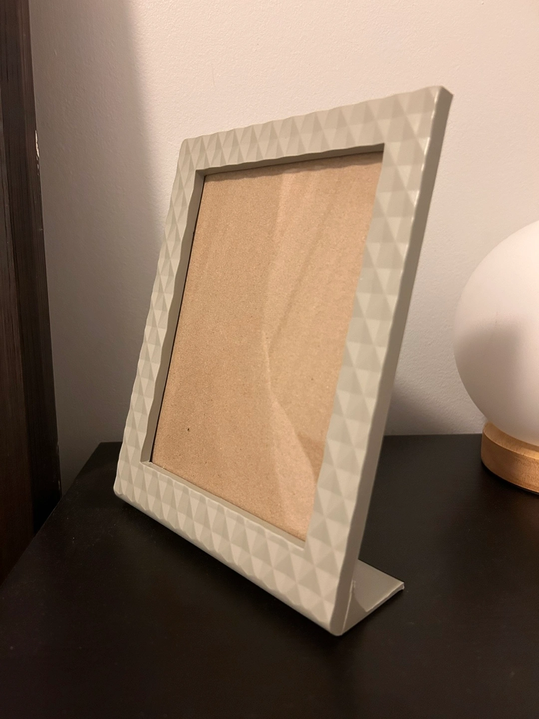 382Pastel Green picture frame with a geometric design. Includes a glass front. Stands upright. Very cute, also brand new Relocation sale *must go asap* Pick up from front and Bathurst