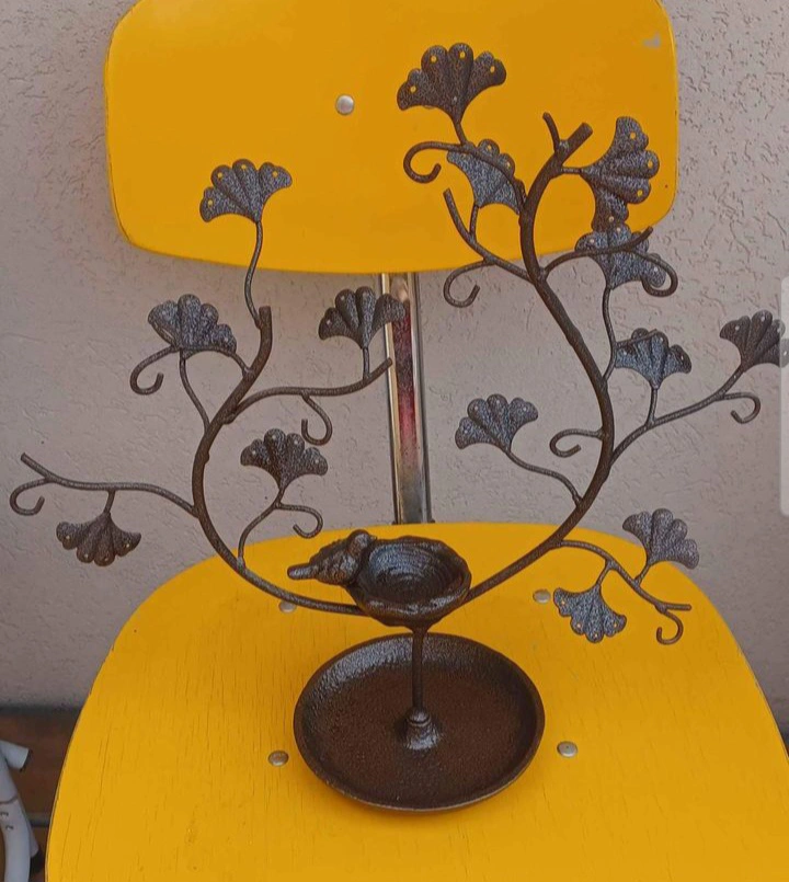 486Metal jewellery stand. Features a bird's nest and a base for rings. Great for organizing earrings, necklaces, bracelets, and rings. No Rust