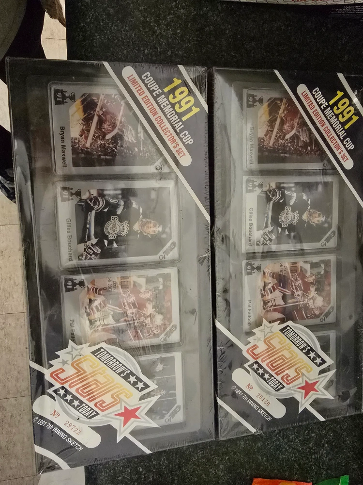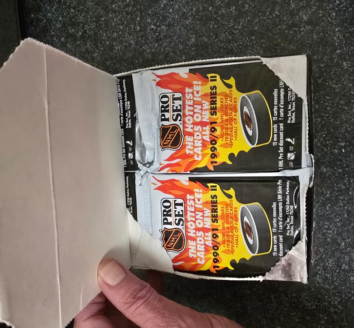 Two packs of 1991-92 NHL Pro Set cards, two sealed packs of 1991-92 Coupe Memorial Cup cards, and two packs of 1990-91 Original 6 cards. Make me an offer.