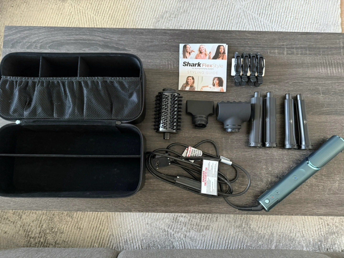 Limited edition color in teal Shark Flex Style air styling and drying system. I had bought this last year and have only used it a few times. I really wanted to love it but it just doesn’t work for my hair at all. Only used the hair curling pieces otherwise all the other pieces are brand new.