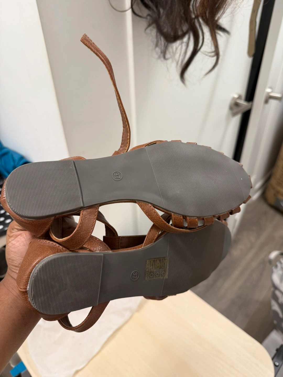 Cute brown gladiator-style sandals in EU size 37, which is about a size 7 in Canada/US. They're in great shape and ready for summer!