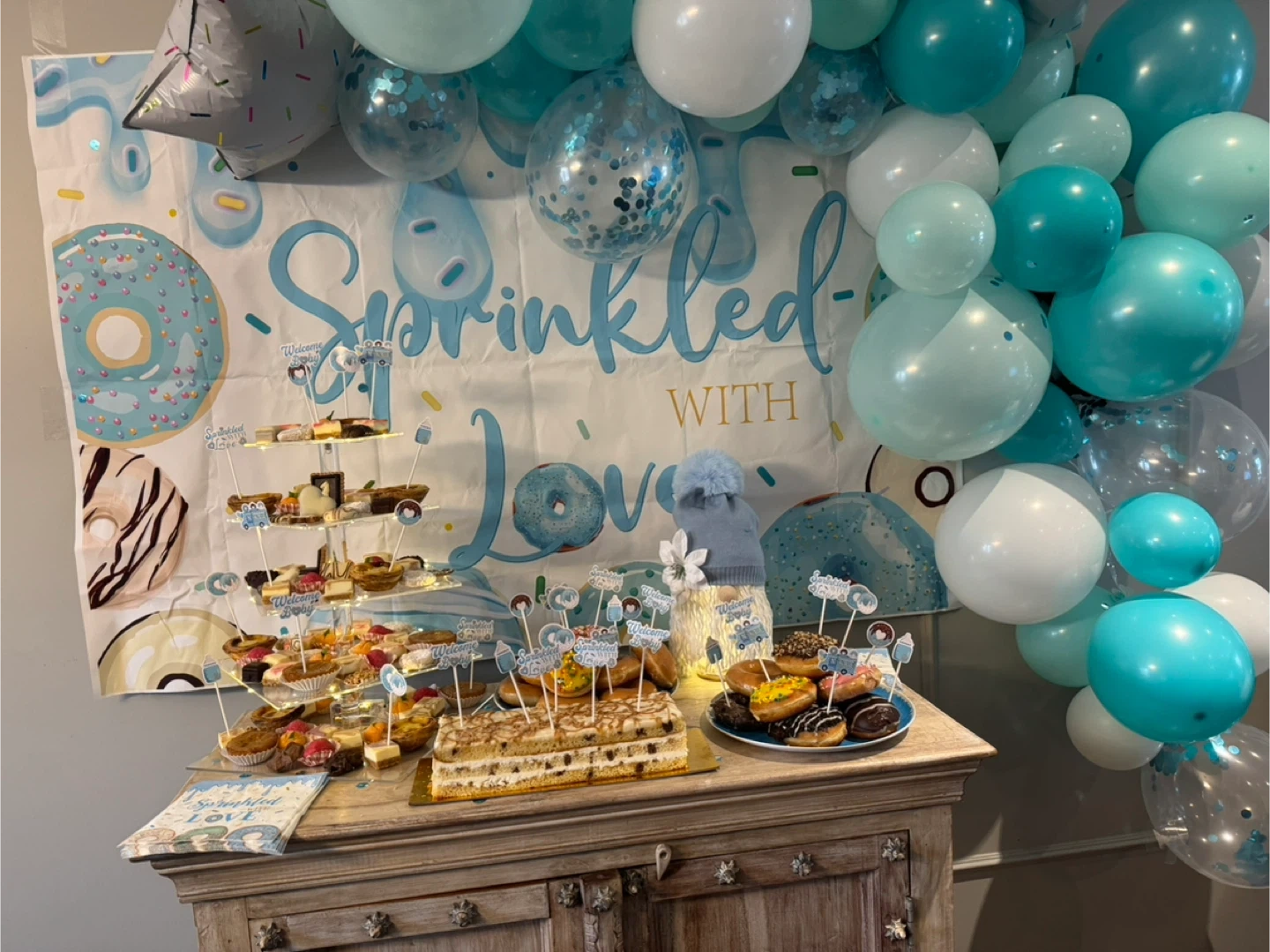I'm selling a 'Sprinkled With Love' themed backdrop, perfect for parties or events! It measures 3.3 x 4.9 ft.