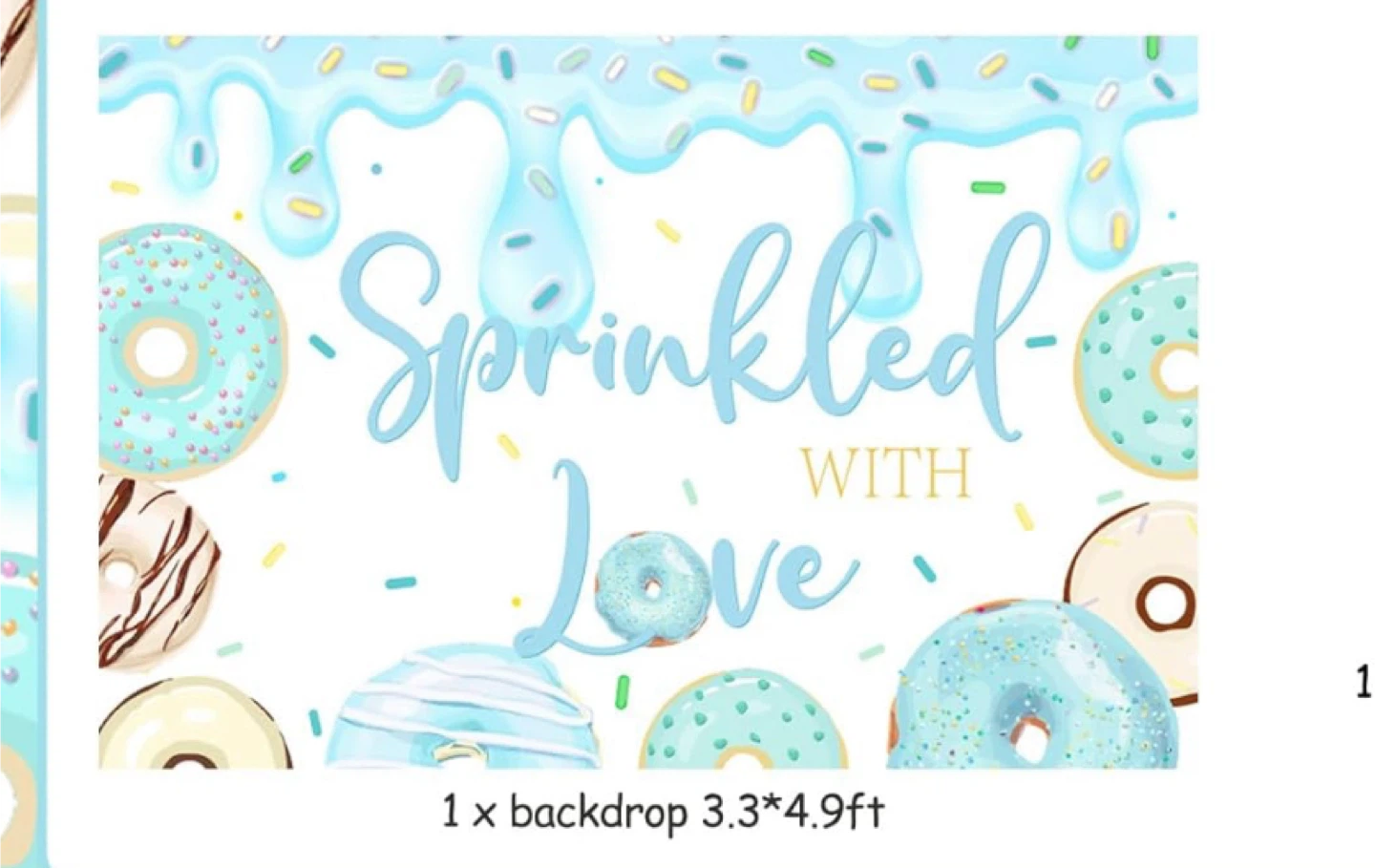 I'm selling a 'Sprinkled With Love' themed backdrop, perfect for parties or events! It measures 3.3 x 4.9 ft.