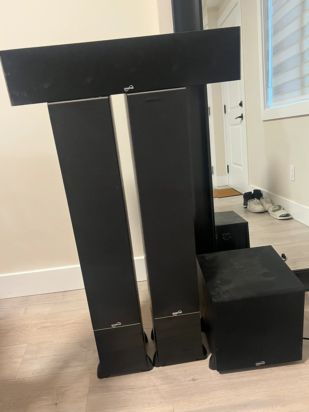 Selling a Soundstage home theatre speaker system in great working condition. This set delivers powerful, clear sound with deep bass—perfect for movies, music, and everyday TV use.