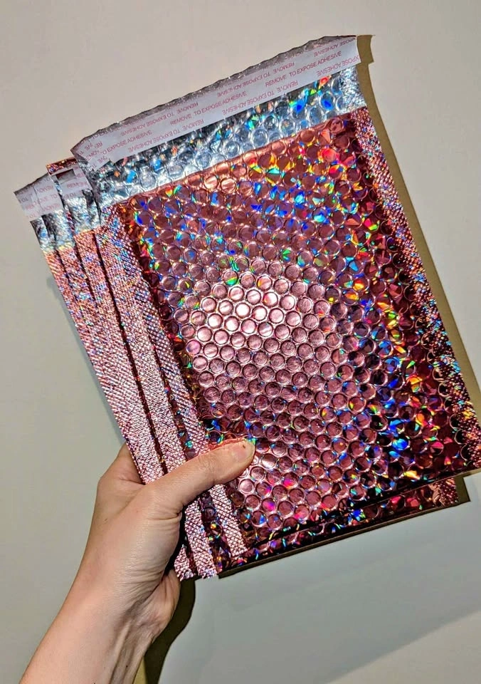 Buy & Sell18 Small Pink Holographic Bubble Mailers18 Small Pink Holographic Bubble Mailers$15Usable size is 5.11 x 7.67 inches (please see photo for exact dimensions). Brand new bubble mailers with a pink holographic metallic design.WHERE TO MEETCheck LocationView MapSELLERverifiedAlexaElizabeth Gardens24717 reviews0 chats·2 favorites·9 viewsSEND CHAT TO SELLERHi Alexa! I’m interested in your listing.Hi Alexa! I’m interested in your listing.Get the Karrot app to chatSign In to chat