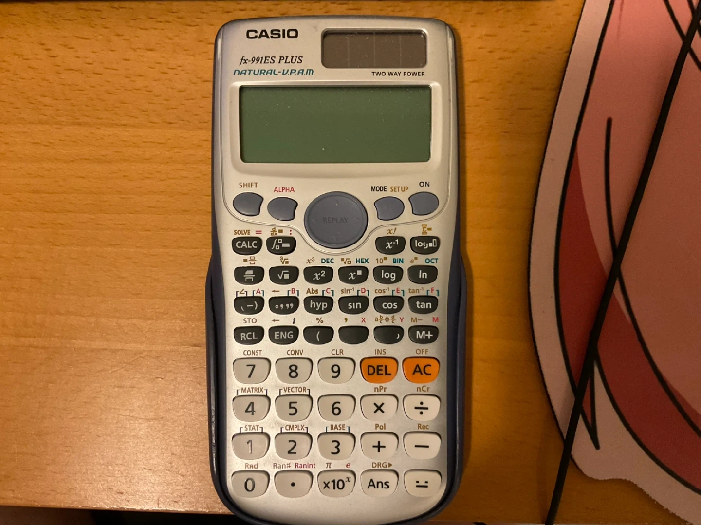 This is a Casio fx-991ES PLUS scientific calculator. It features natural V.P.A.M. display and two-way power.