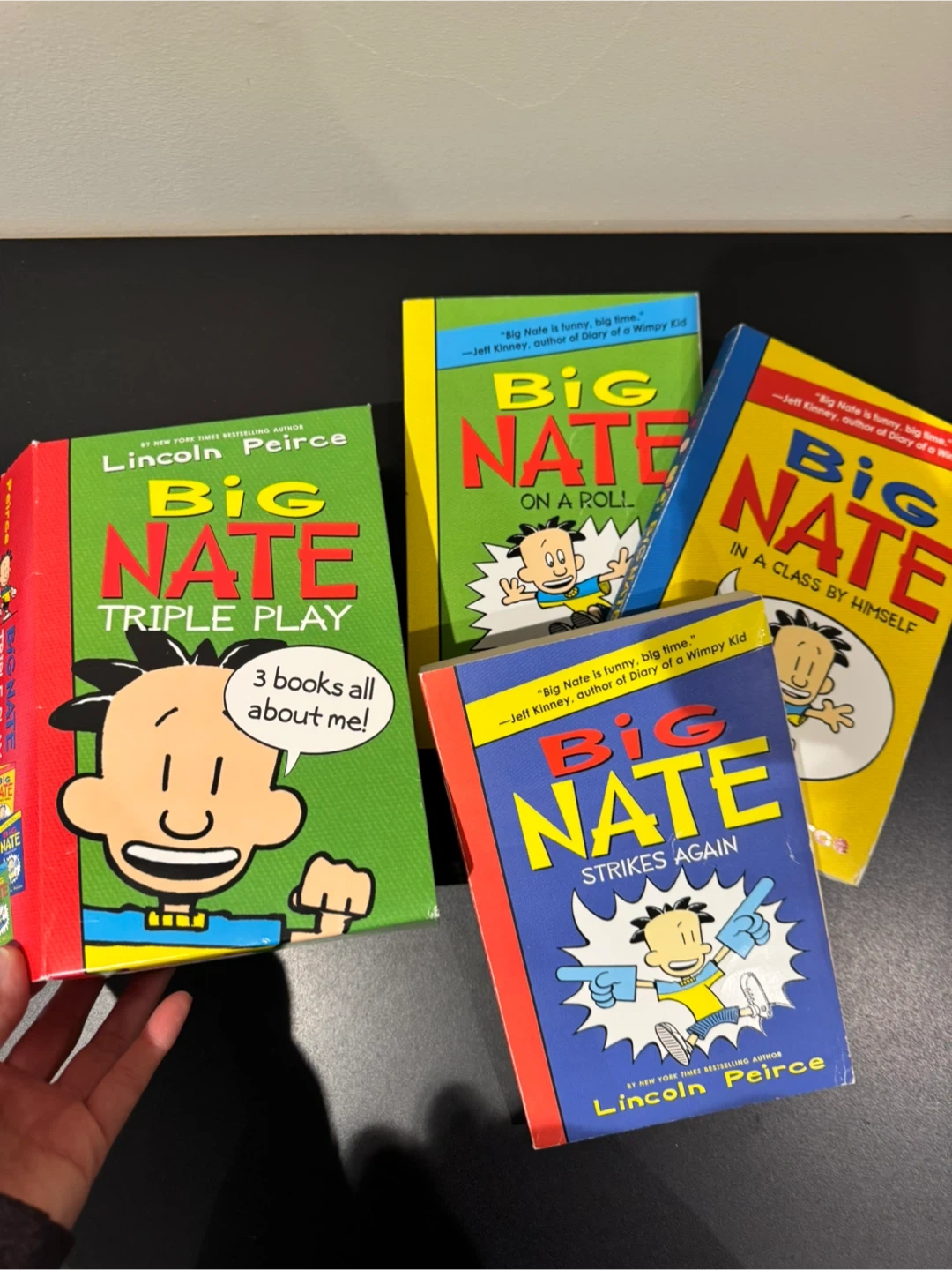 This is a bundle of Big Nate books by Lincoln Peirce. The books included are Big Nate on a Roll, Big Nate Strikes Again, and Big Nate in a Class by Himself. Big Nate Triple Play is also available. These books are geared towards readers aged 8-12. Cash and pick up only at Markham (close to Stouffville Hospital).