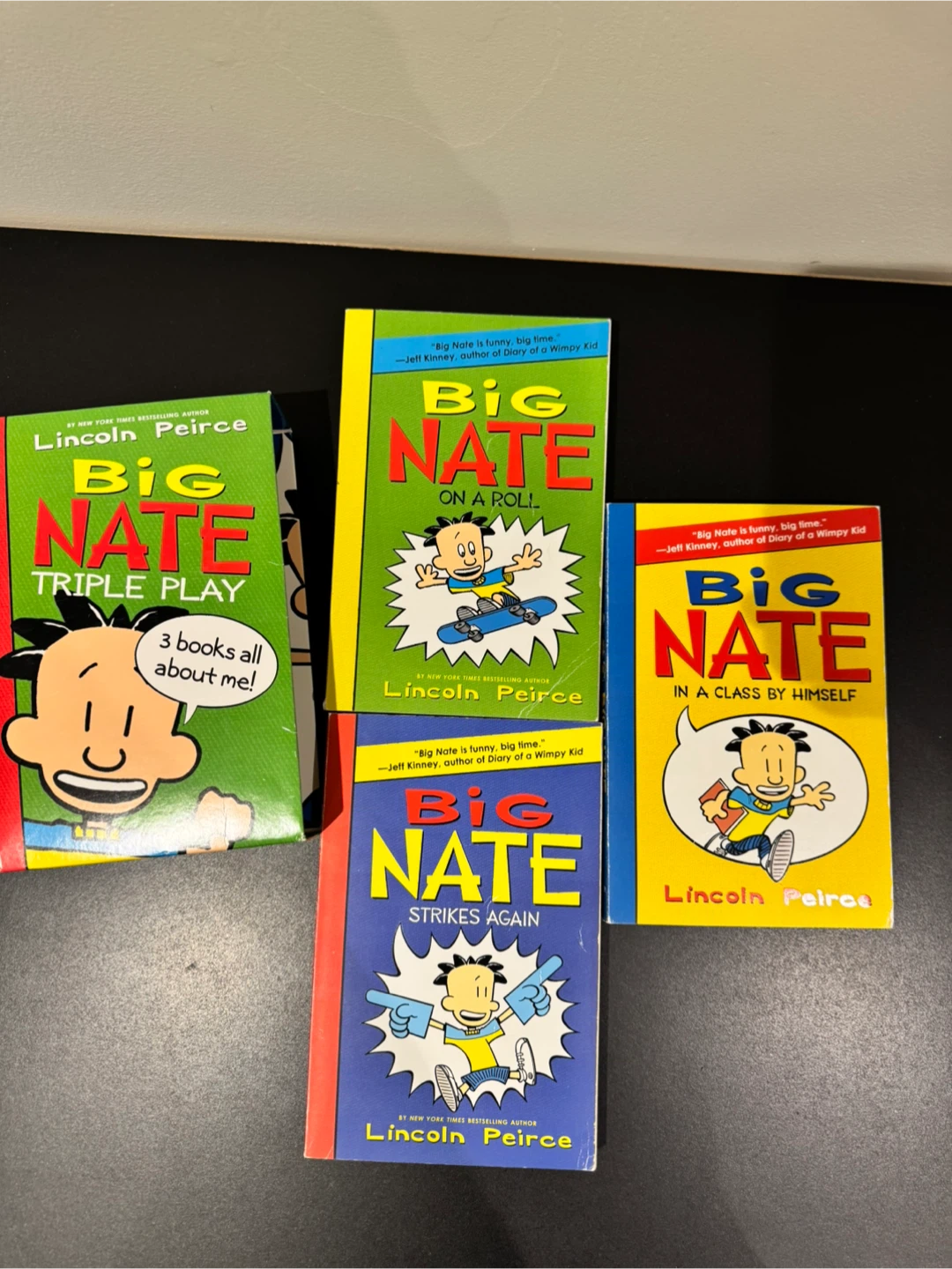 This is a bundle of Big Nate books by Lincoln Peirce. The books included are Big Nate on a Roll, Big Nate Strikes Again, and Big Nate in a Class by Himself. Big Nate Triple Play is also available. These books are geared towards readers aged 8-12. Cash and pick up only at Markham (close to Stouffville Hospital).