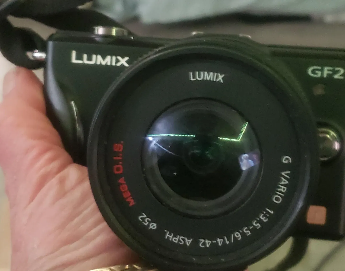 Panasonic Lumix GF2 camera with a G Vario 14-42mm lens. It features MEGA O.I.S. image stabilization. This is a mirrorless digital camera. Great for capturing everyday moments!