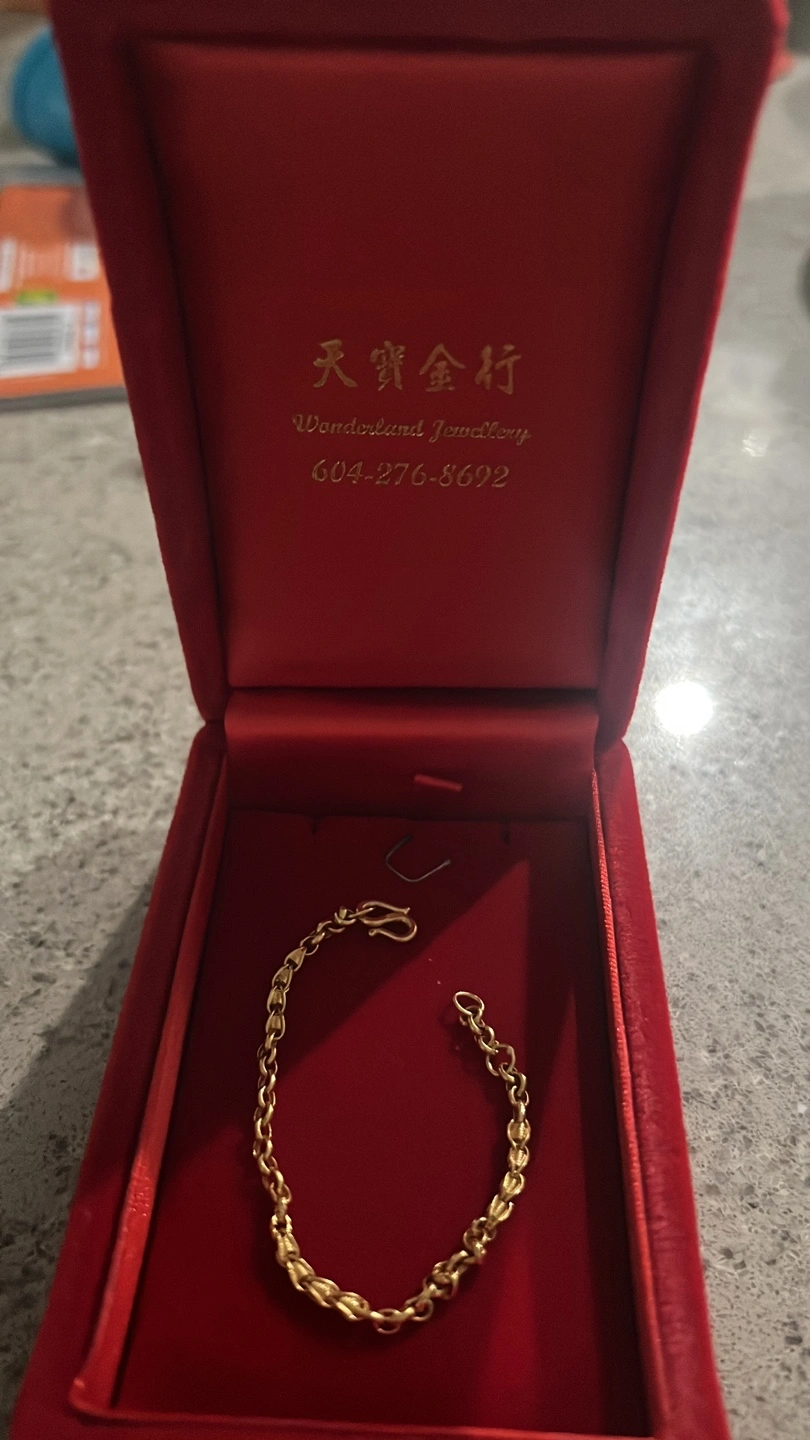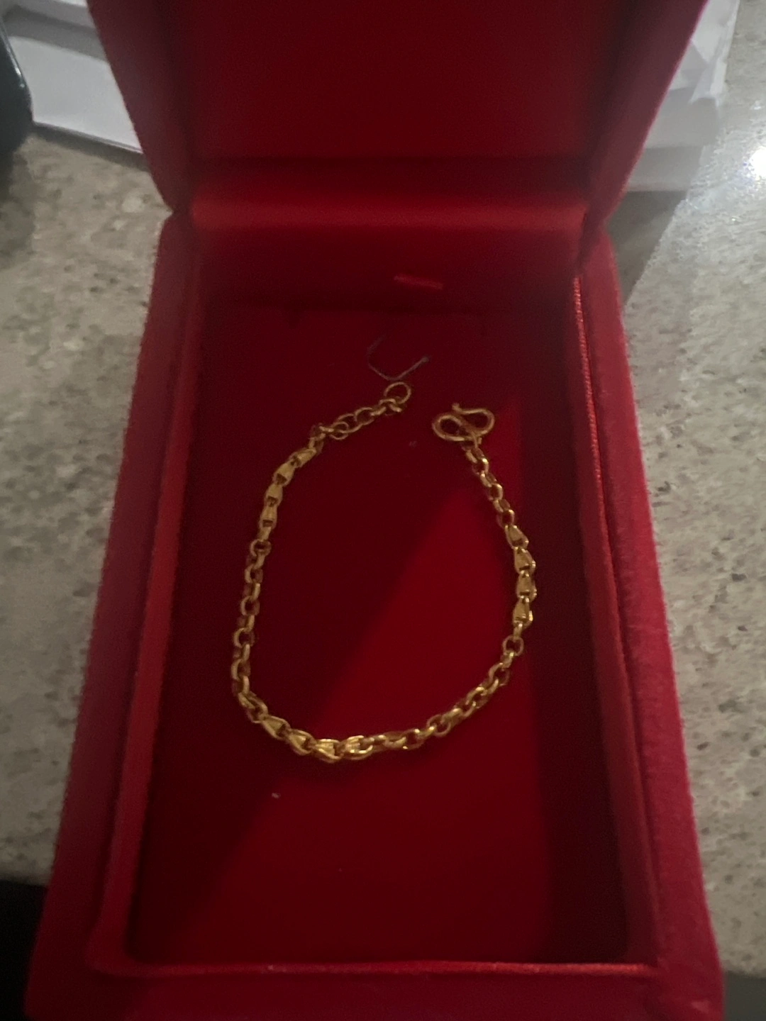 Gold chain bracelet in a red box. Brand new