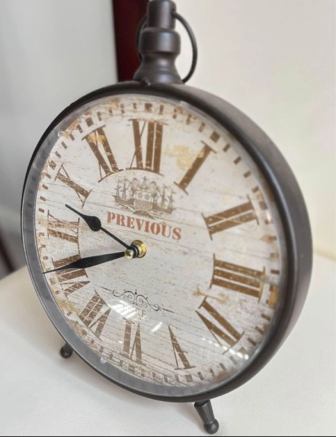 Add interest to any room with this nostalgic clock, suitable for wall or desktop