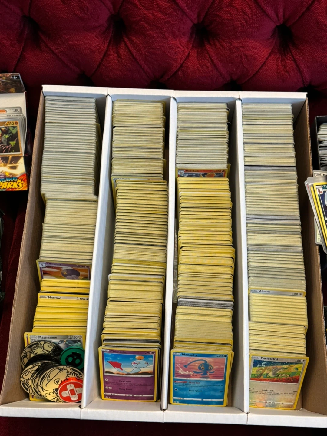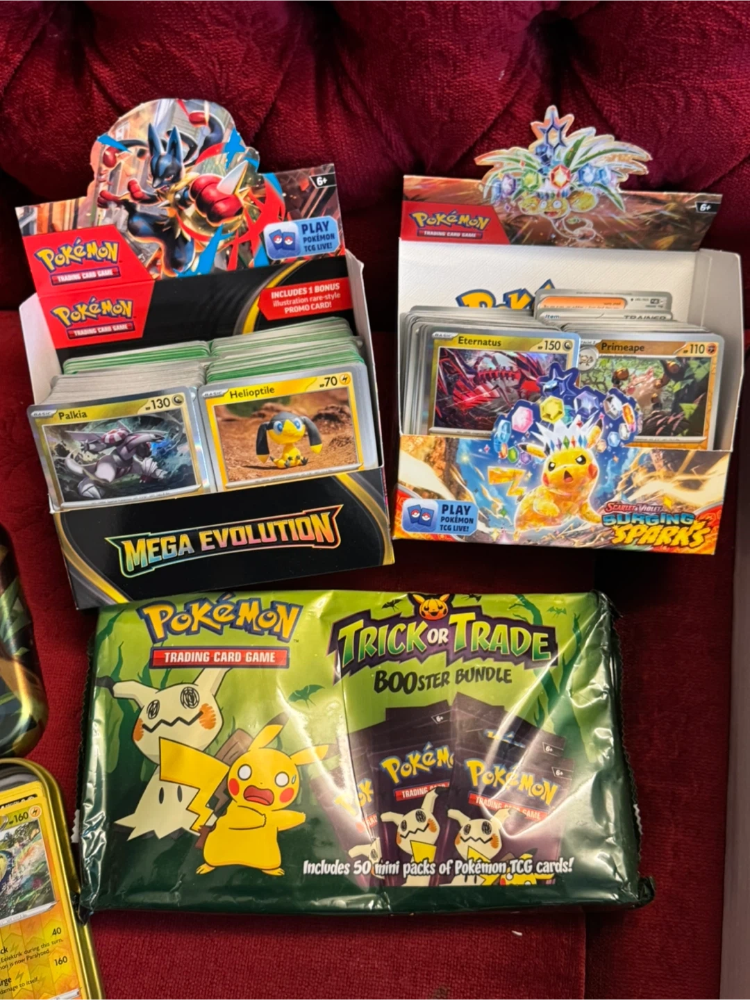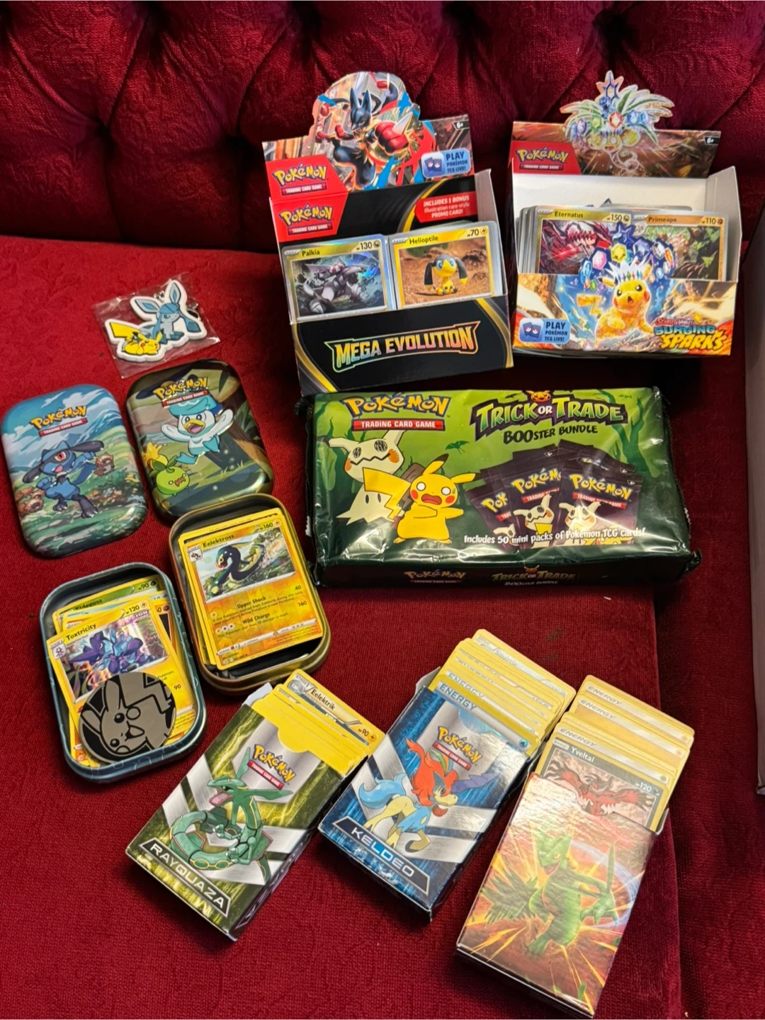 Massive collection of Pokémon trading cards, including booster bundles and display boxes. Features cards from various sets like Mega Evolution and Burning Shadows. This is a great starter collection for any Pokémon fan!