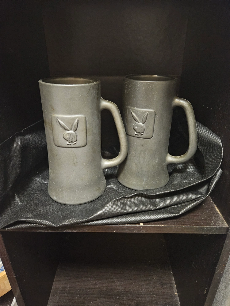 Vtg PLAYBOY Club Matte Gray Glass Beer Stein Mug w/ Bunny Log