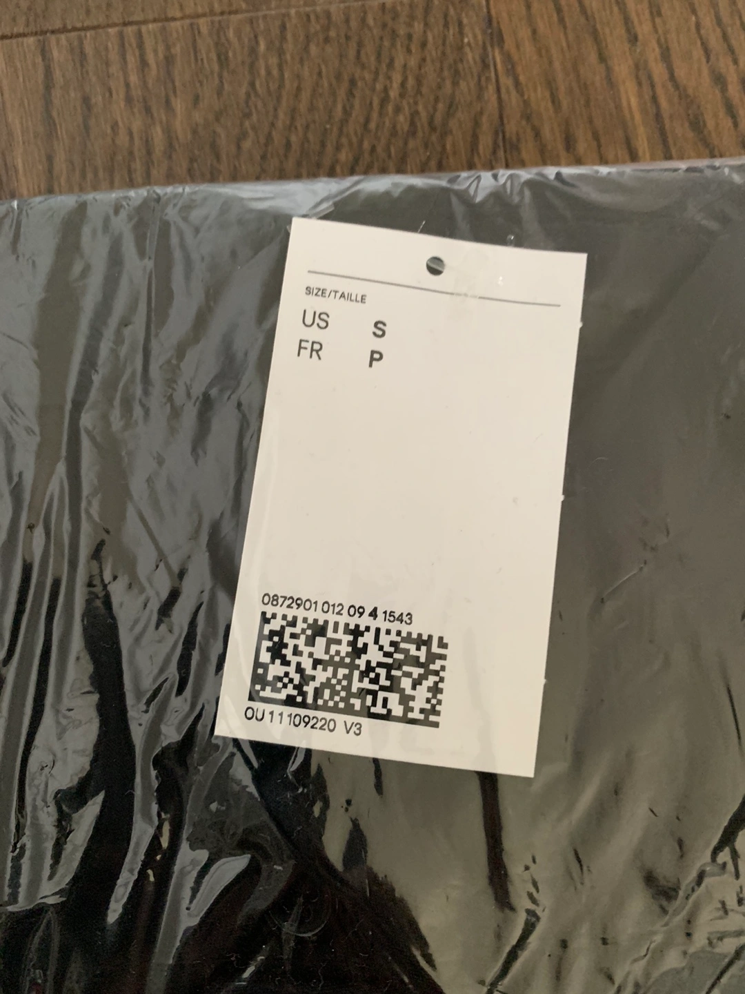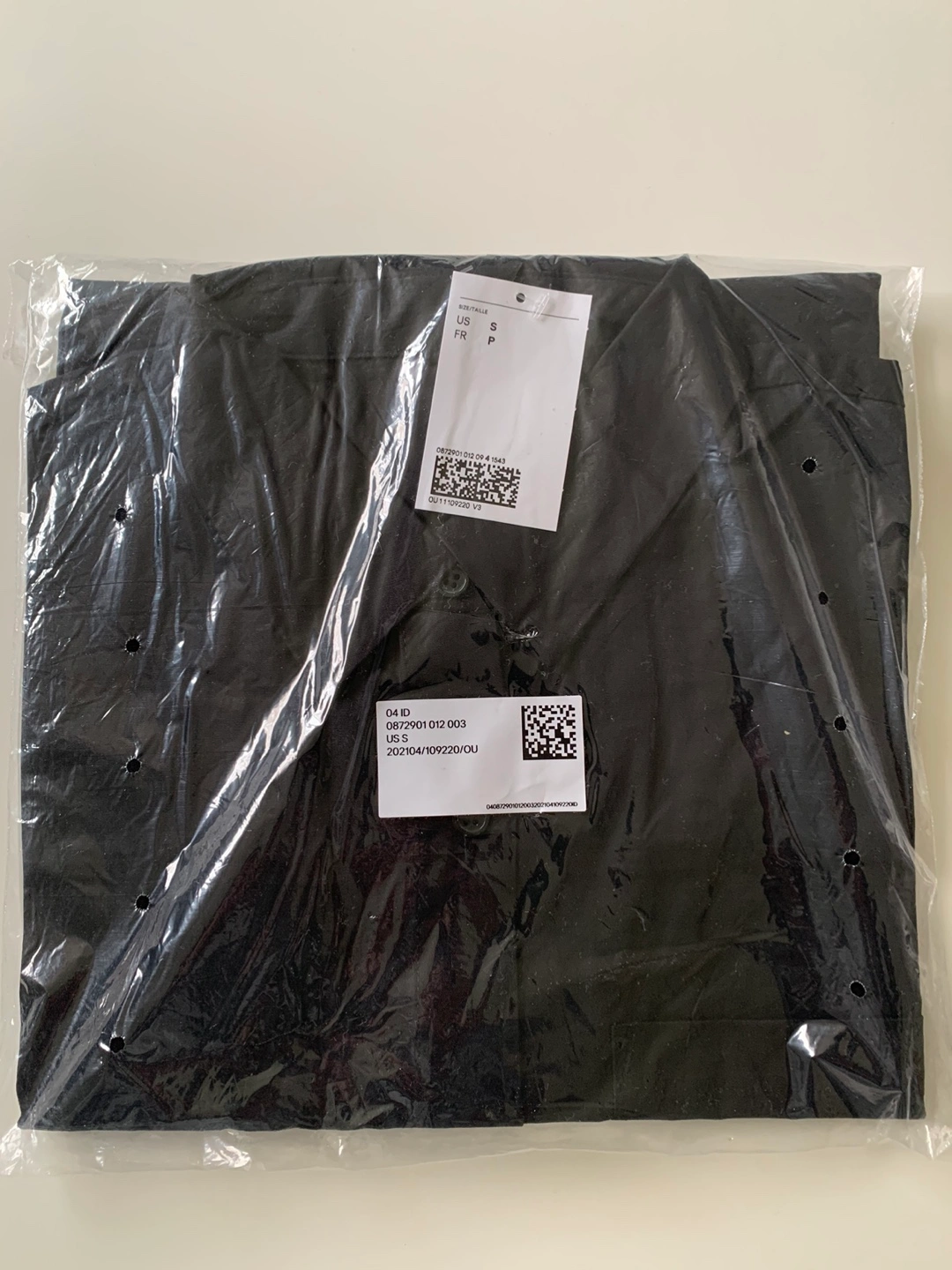 322Black long-sleeved shirt with a single chest pocket and a curved hem. Size Small.