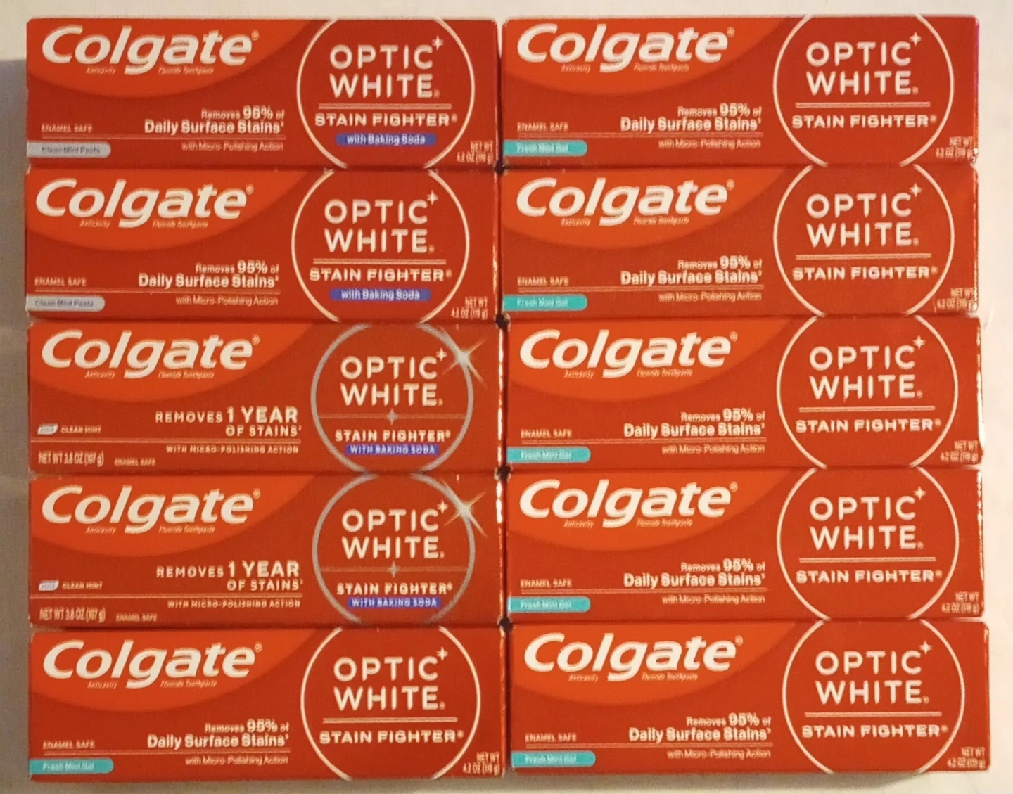 Selling 10 boxes of Colgate Optic White Stain Fighter toothpaste w/Baking Soda