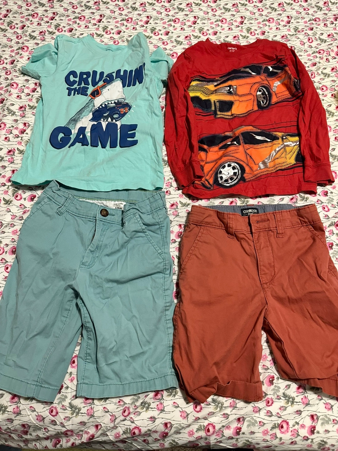 Bundle includes: 1 long sleeve t-shirt, 1 short sleeve t-shirt, 2 pairs of shorts, 1 pair of pants, 1 pair of sweatpants. All items are in good condition. Size 6 $5 each