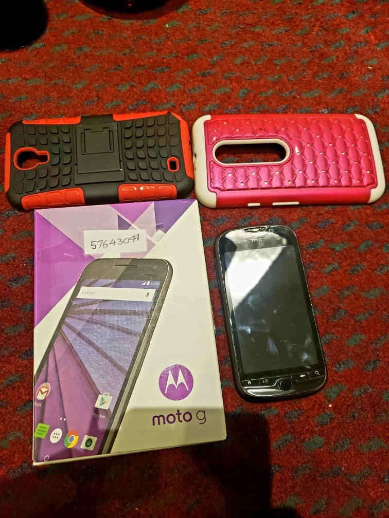 Lot of mobile phones HTC, Motorola Moto G with Box and Cases