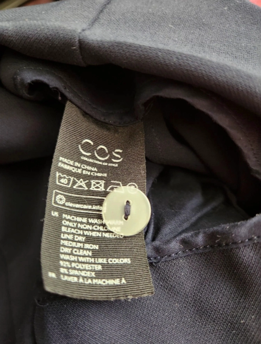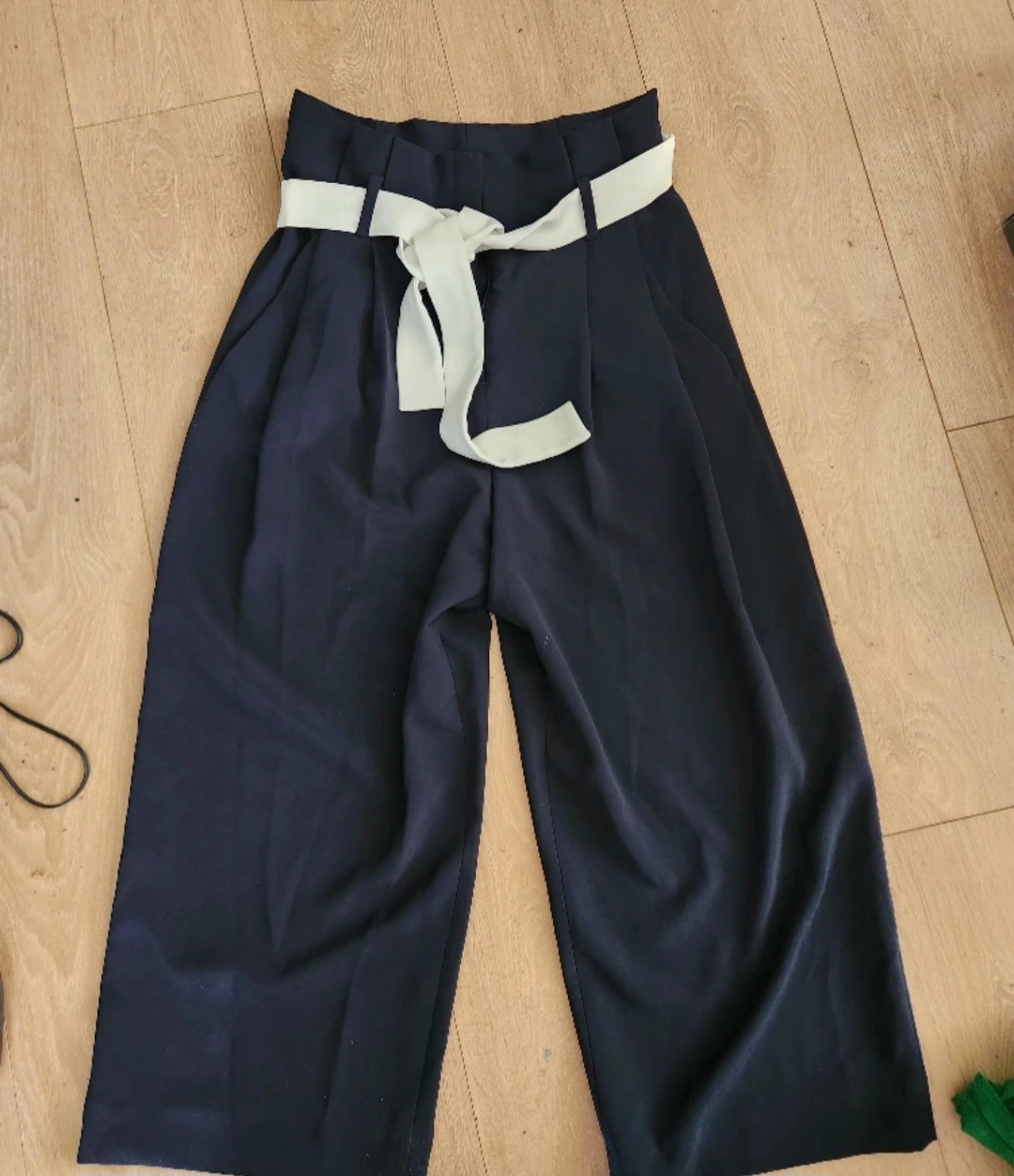1000+COS Belted Wide Leg High Waist Paperbag Trousers/Culottes Size 38 (US 10 or 28/29 according to their size chart) Navy Blue In excellent pre-owned condition, no flaws, like new. Approximate flat measurements : Waist : 15” Front rise : 15.25” Inseam : 23” Description : A modern wardrobe staple, these high-wasted trousers are made with drapey crepe. Cropped length wide-leg fit, they have a pleated waist that gathers when tied and it is finished with a hidden zip fly. Fabric: 92% polyester, 8% spandex Tags : Wide Leg, Crop, High Waist, Paperbag, Vintage Inspired, Retro, Preppy, Dark Academia, European, Quiet Luxury, Understated Luxe, Garconne, Normcore, Minimalist, Sophisticated, Classic, Capsule Wardrobe, Country Club, Sporty, Traditional, University, College, Ivy League, Plazacore, Student, Professor, Old Money, Grunge, Office, Work, Business Casual, Workwear, Girl Boss, Feminine, Smart, Professional, Scandinavian, Nordic, Casual, Semi-Formal, Cocktail Party, Spring, Summer, Fall, Winter, Basic, Everyday, Neutral, Minimal Please don’t ask if it’s available. If it’s not marked ‘Pending’ or ‘Sold’, then it’s available. * Cash Only * * No E-transfers * * Pickup Only * * Serious Offers Only *