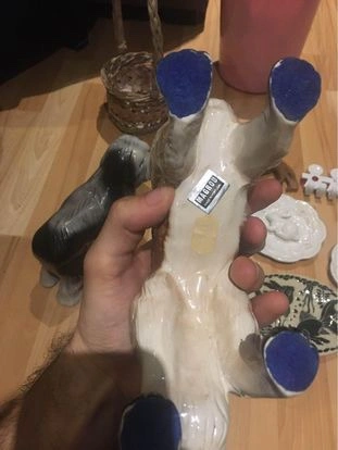 Two Vintage Dog Figurines Magrou porcelain dogs made in Portugal