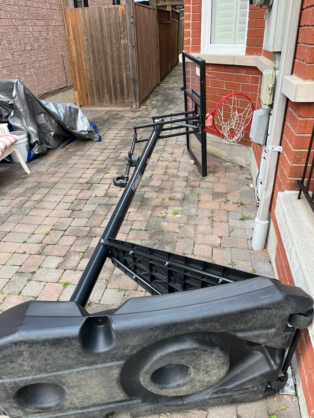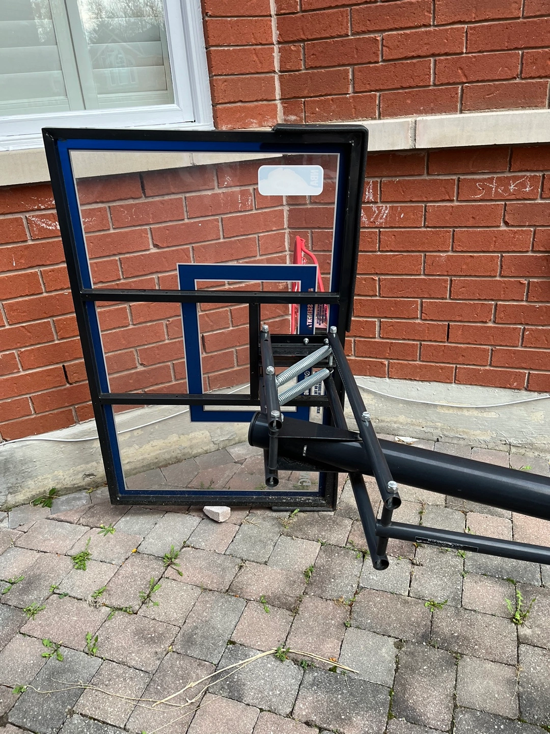 Basketball hoop with backboard, pole, and base. Comes with a net. Good condition.