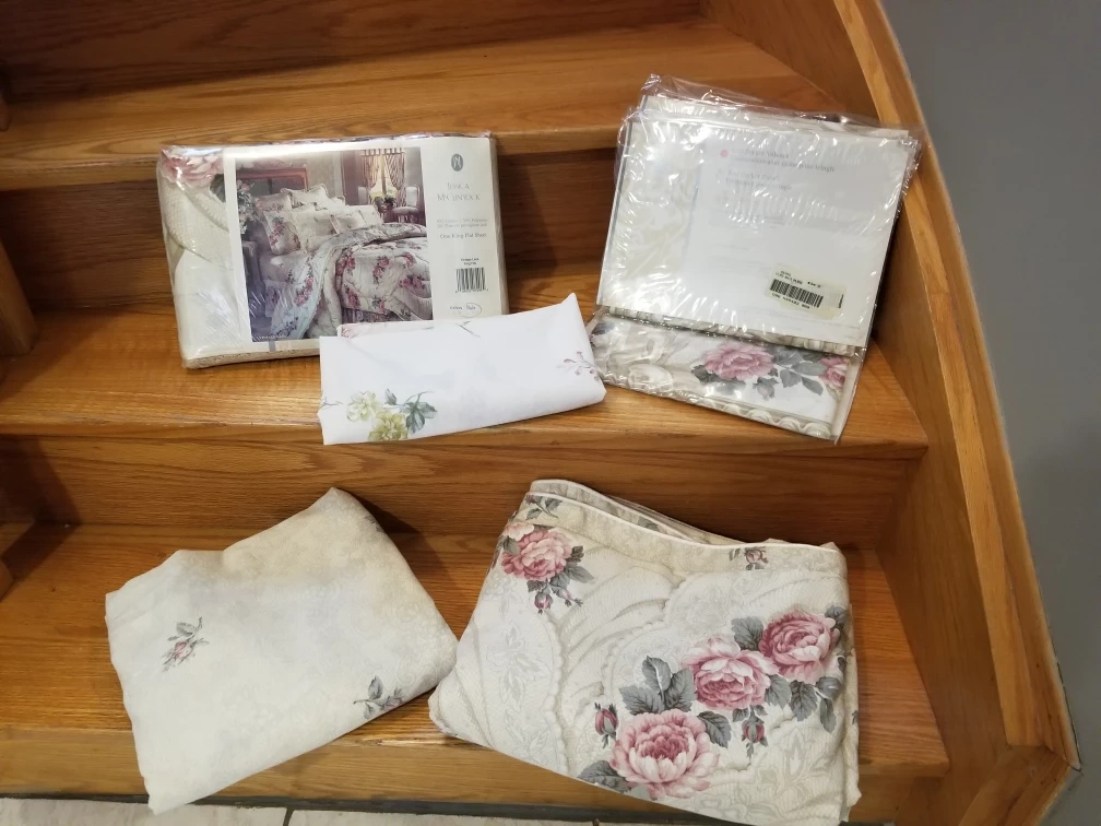 288Some brand new Some lightly used Queen duvet cover like new King size flat sheet brand new Queen size fitted sheet gently used King size pillow cover brand new 3 valance drapery brand new Xp pick up Bovard and Dixie area of Brampton