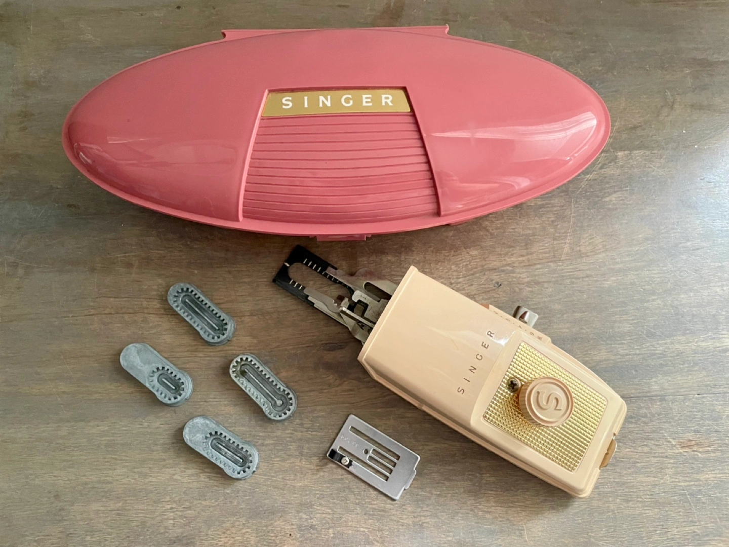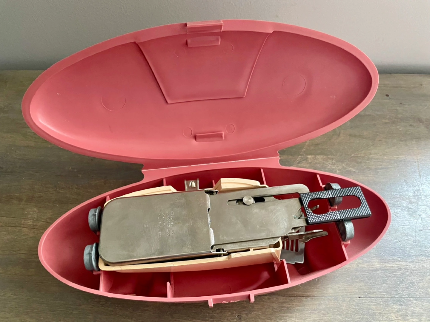 Vintage 1960s Singer Buttonholer Sewing Machine Attachment Pink Clamshell Case