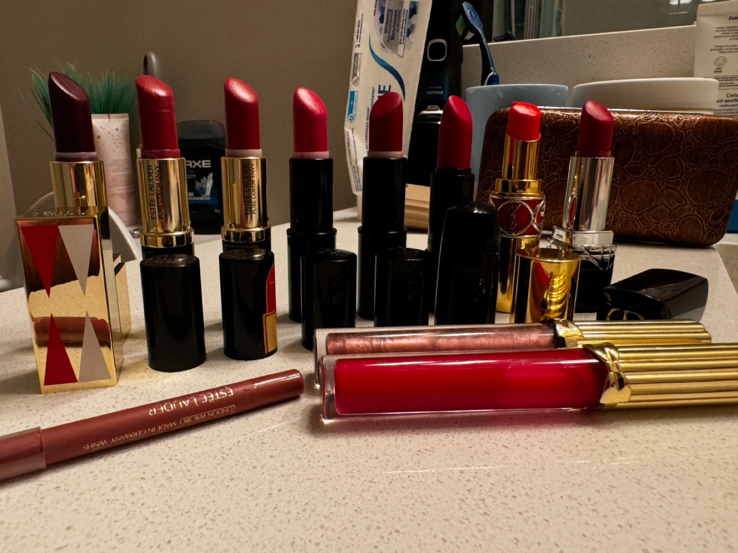 Bundle of lipsticks and lip gloss. Includes Estee Lauder, YSL, Lancôme & Dior 999. Used, 8 lipsticks, 2 glosses, 1 lip liner. $20 for all.