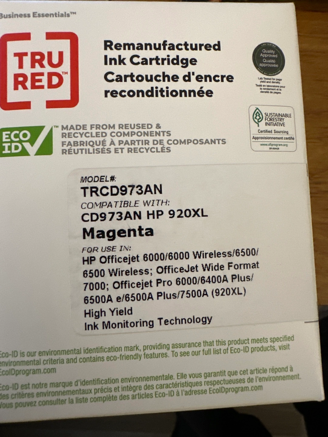 Remanufactured ink cartridge, compatible with HP 920XL. High yield. Ink monitoring technology. Made from reused and recycled components.