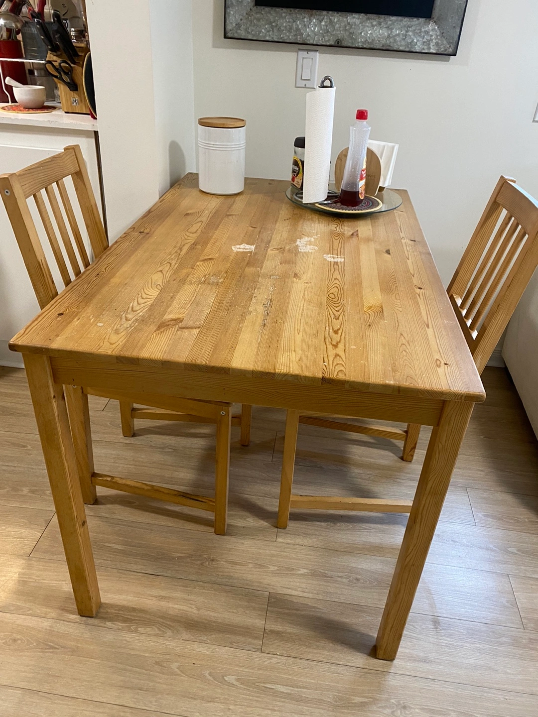 Buy & SellIKEA Table and Two ChairsIKEA Table and Two Chairs$20Small wooden table and two chairs. Solid wood, some minor wear and tear. Moving out! Pick up until: Nov, 06ConditionOkayWHERE TO MEETCheck LocationView MapSELLERLeticiaPalmerston816 reviews3 chats·2 favorites·129 viewsSEND CHAT TO SELLERHi Leticia! I’m interested in your listing.Hi Leticia! I’m interested in your listing.Get the Karrot app to chatSign In to chat