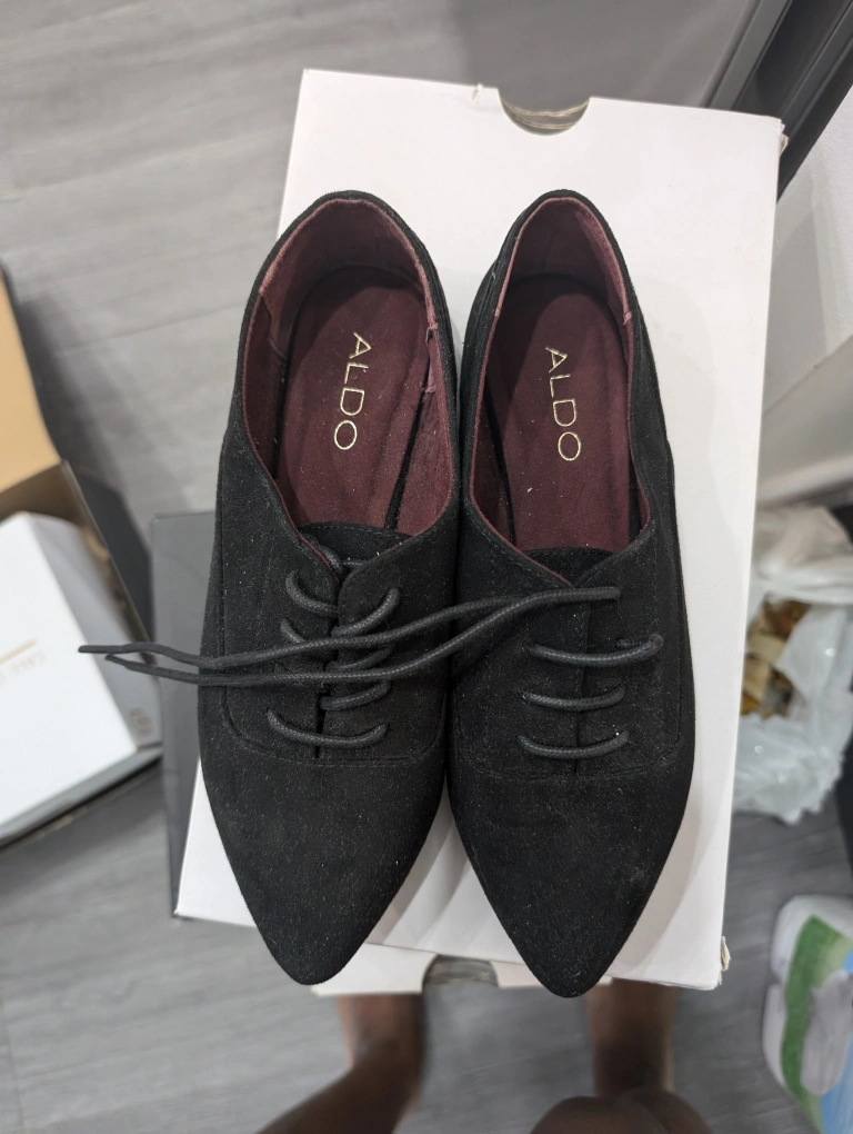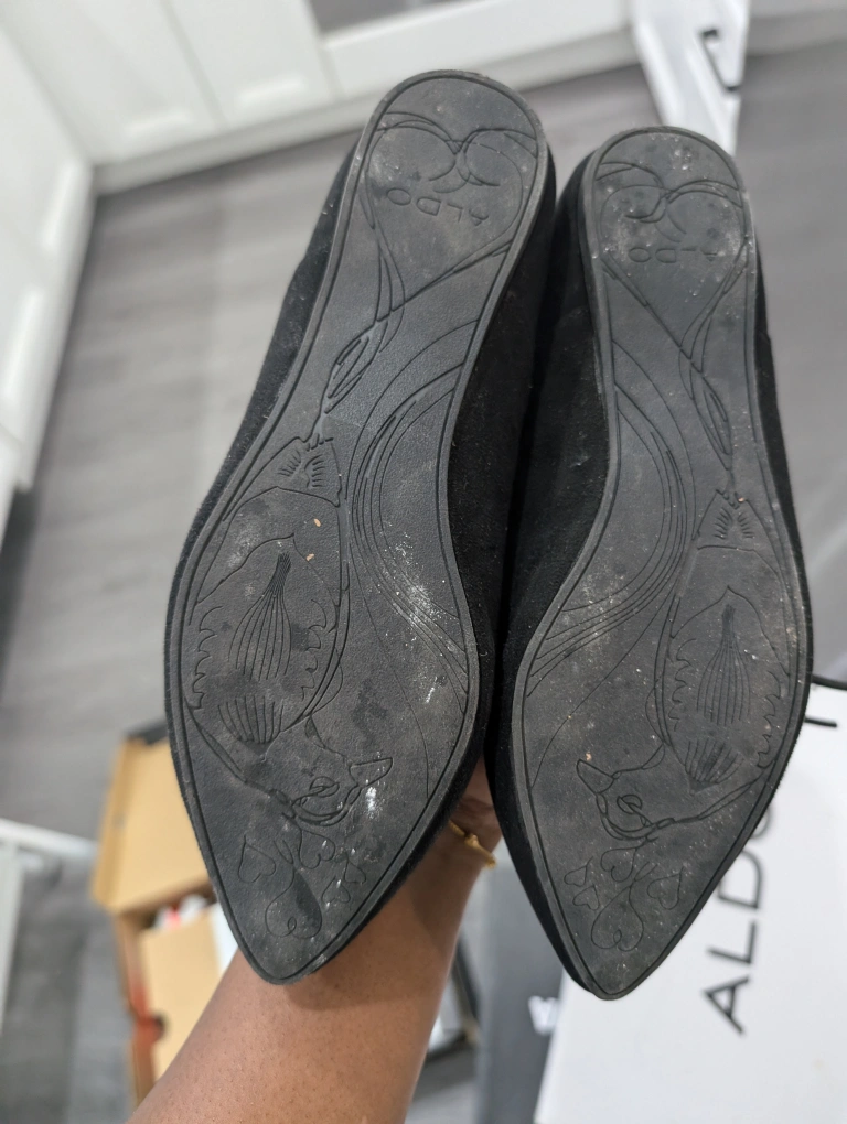 Black suede pointed toe flats with laces. I have had this for years but have never worn it.