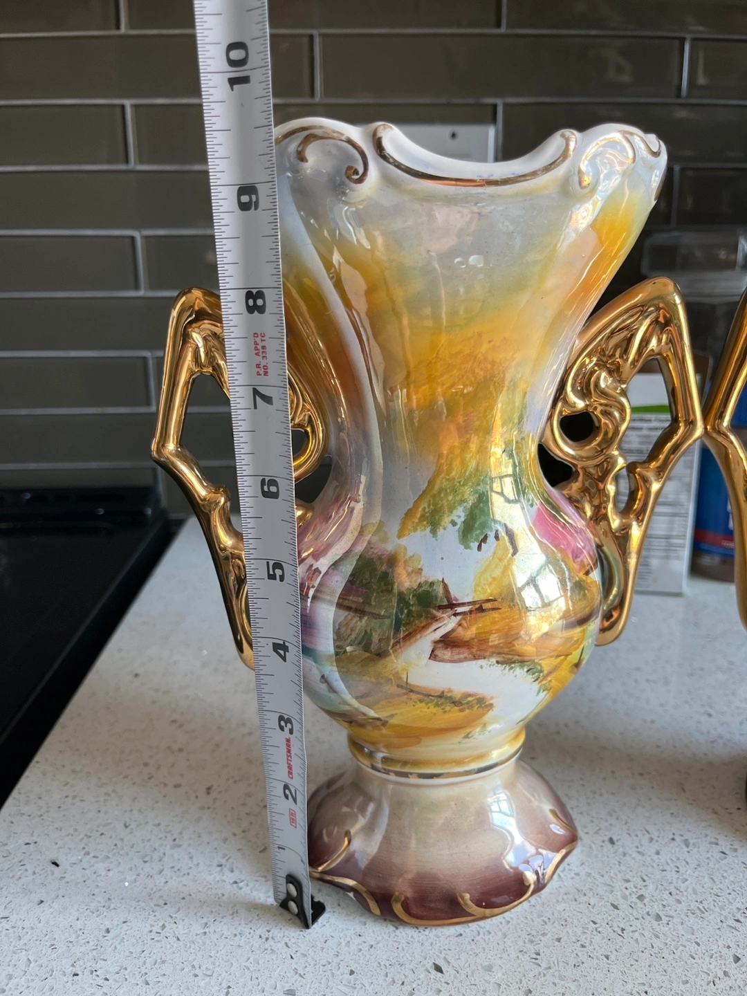 Pair of vintage Alcor vases. Hand-painted. Gold trim. Beautiful detail. No cracks or chips