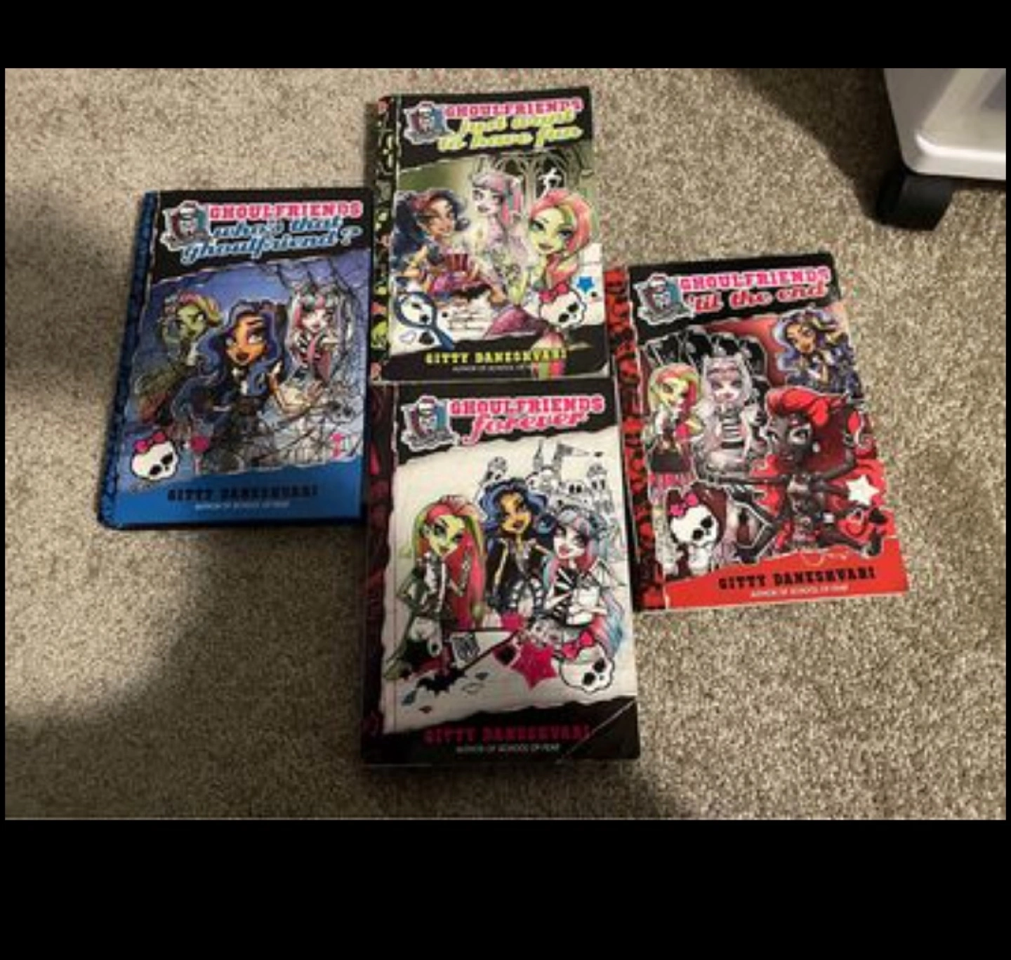 Set of five Monster High Ghoulfriends books. All books are in good condition. Books ๐ , headphones , baseball โพ๏ธ bracelet , and new pencil โ๏ธ case never used for sale all for 10$ or 3$ each .