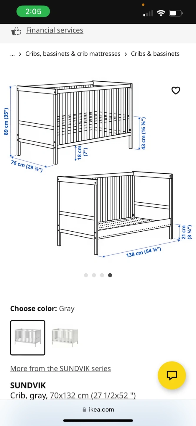 IKEA SUNDVIK Crib - Gray