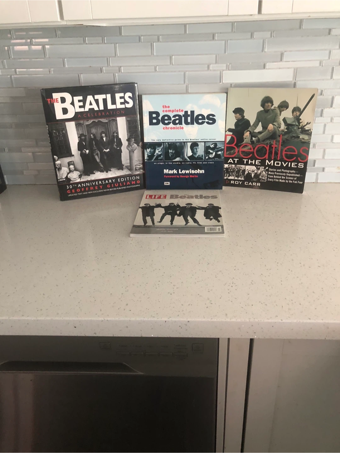 Includes 'The Beatles: A Celebration 30th Anniversary Edition' by Geoffrey Giuliano, 'The Complete Beatles Chronicle' by Mark Lewisohn, and 'Beatles at the Movies' by Roy Carr. Also includes a 'LIFE Beatles' magazine. Perfect for any Beatles enthusiast!