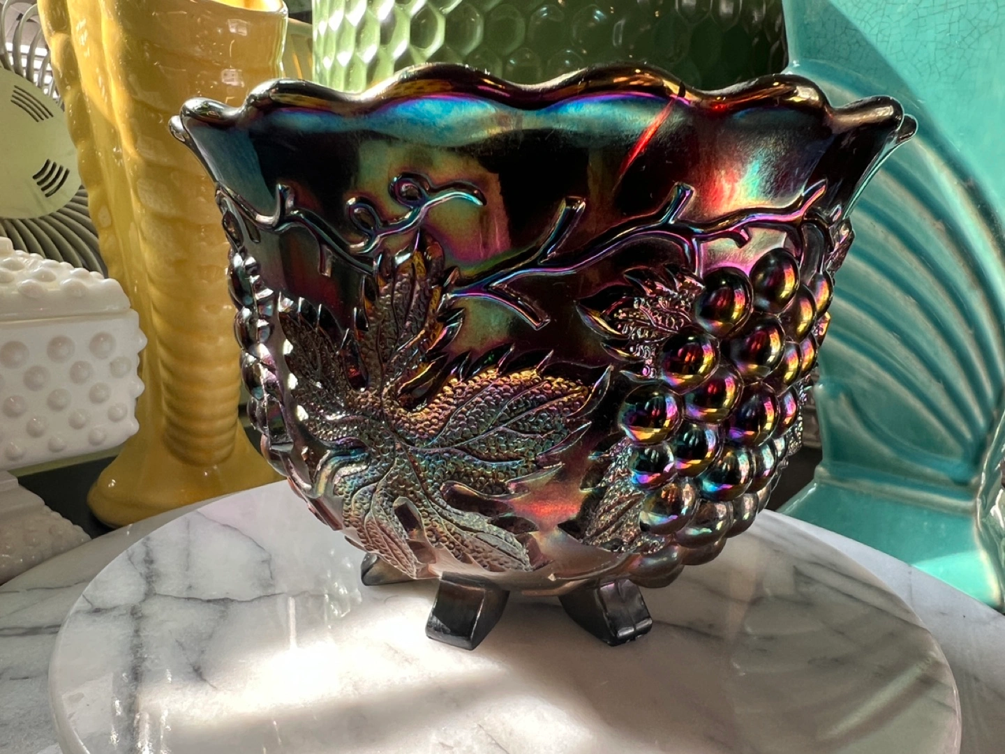Antique Dugan Carnival Glass Grape Pattern Bowl