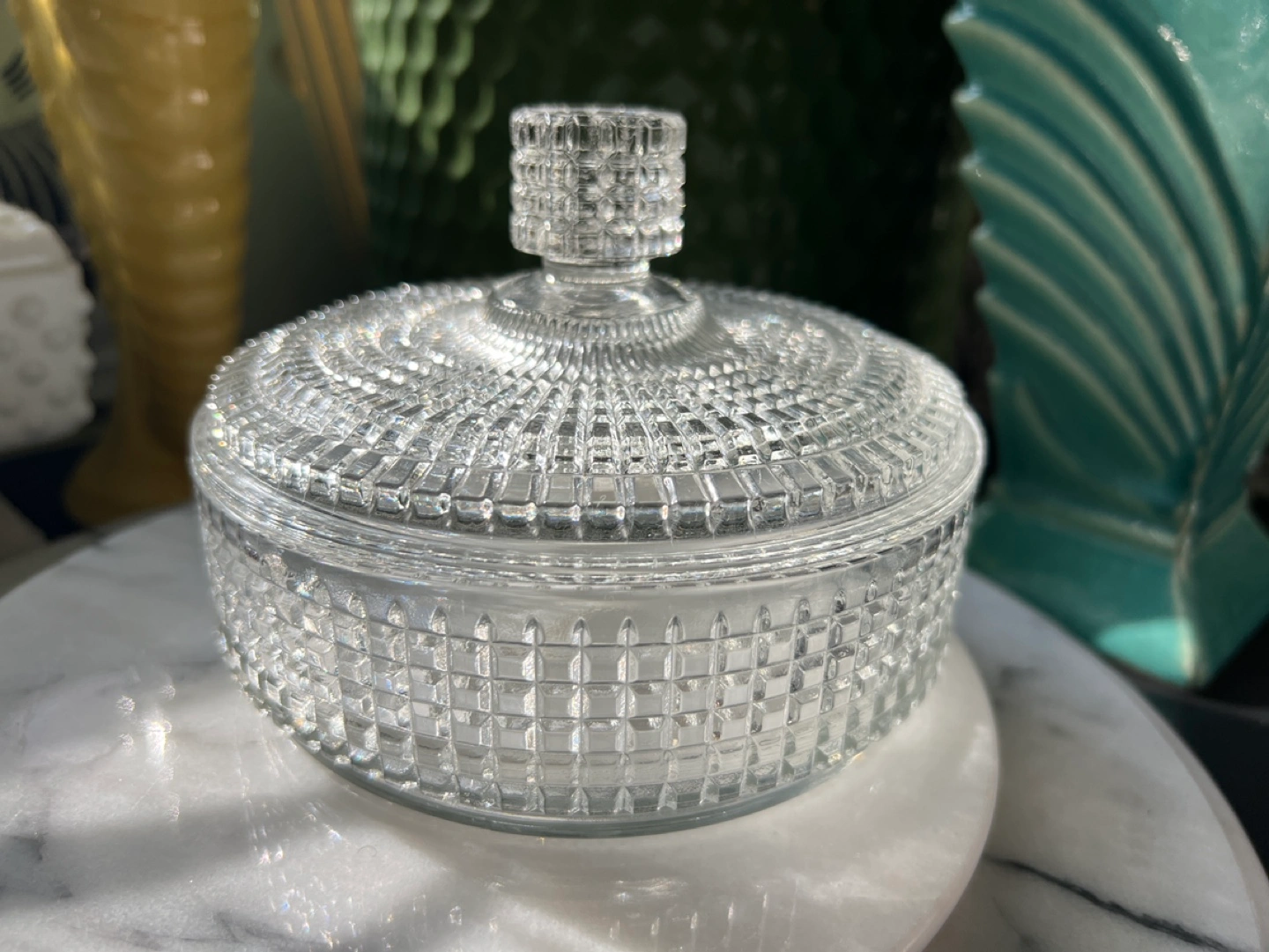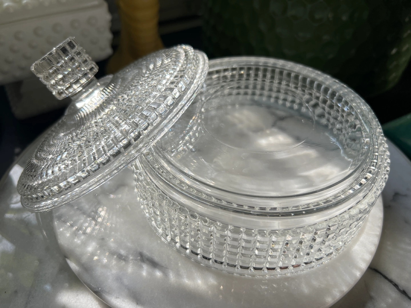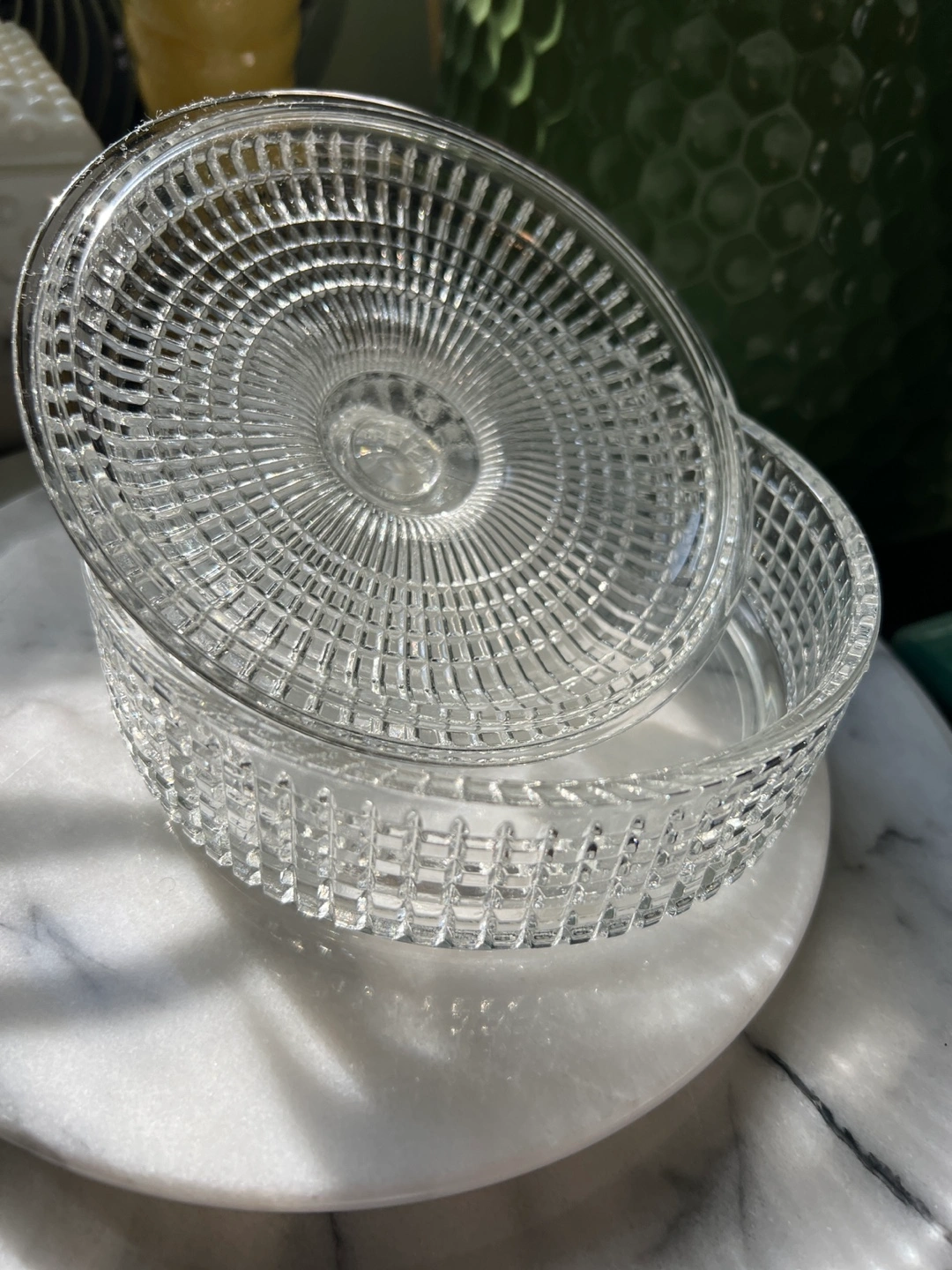 Small glass trinket dish with lid.