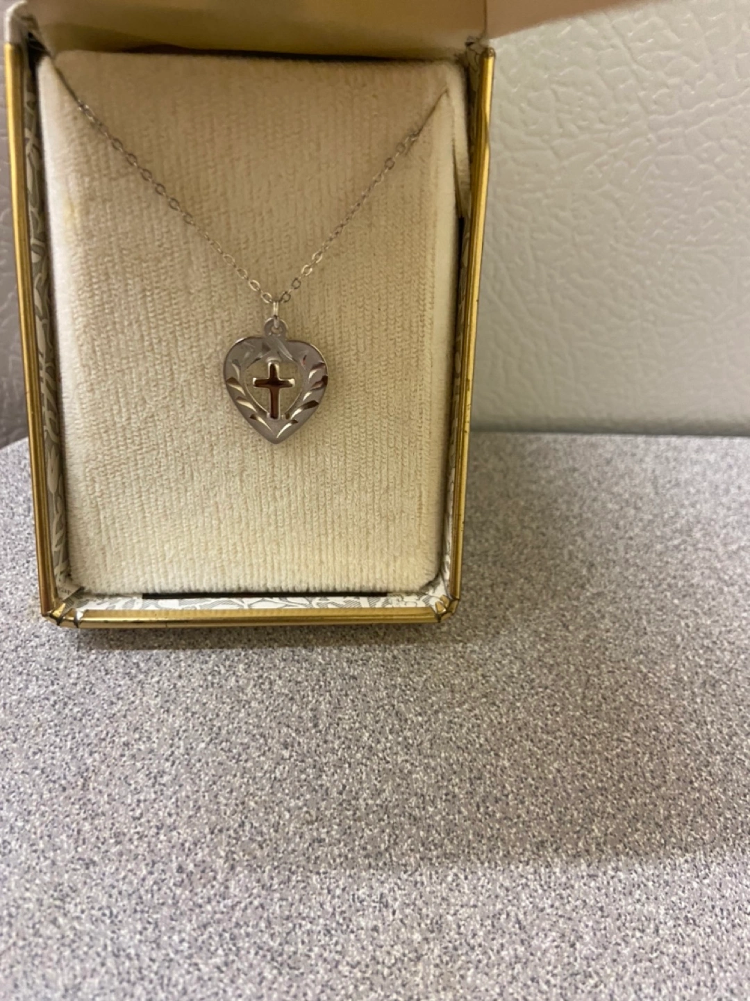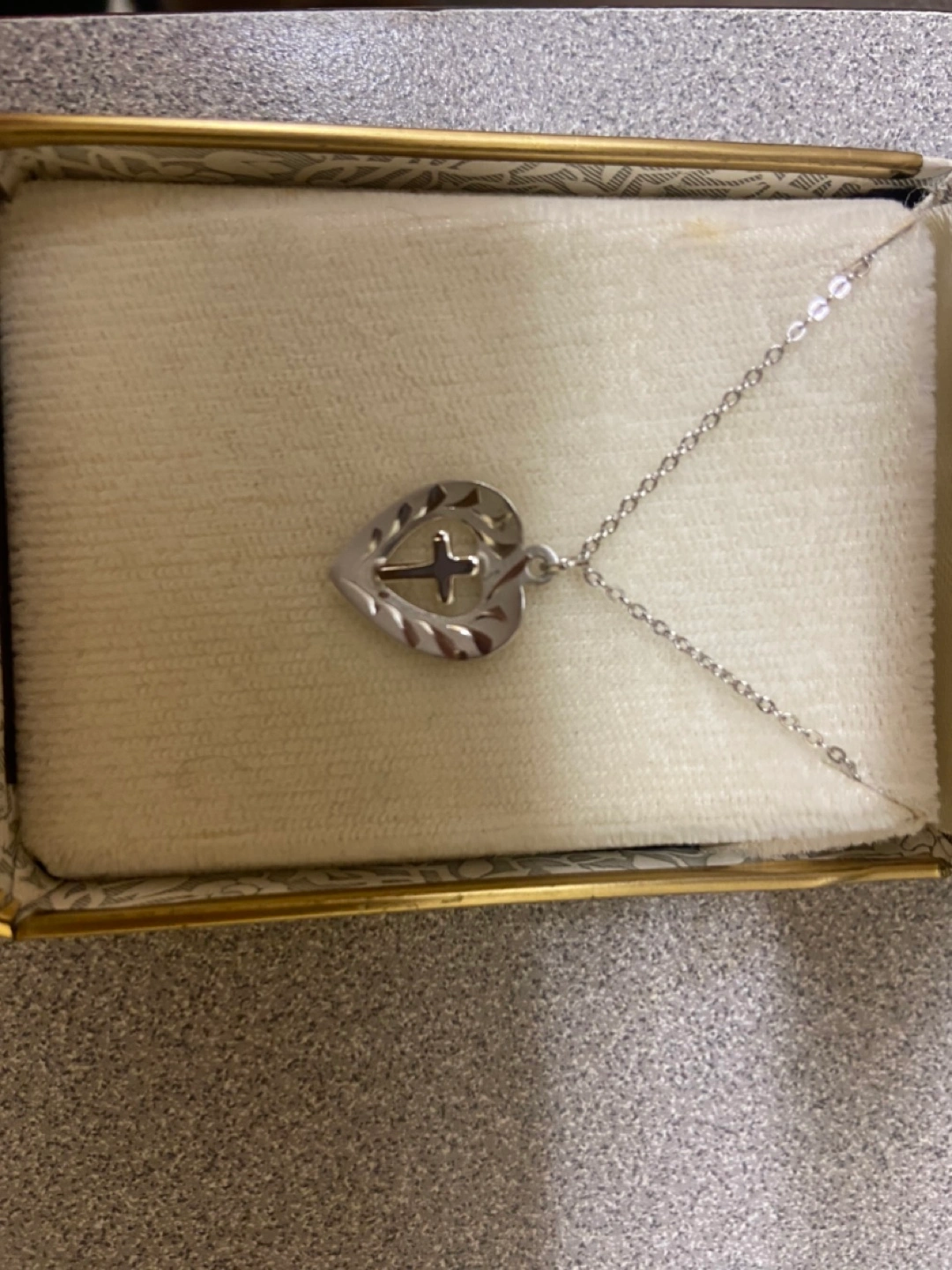 72Silver heart necklace with cross pendant. Comes in a small box.