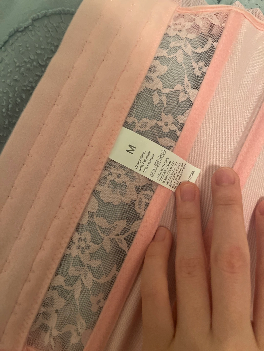 New Pink Satin and Lace Corset and G-string Set