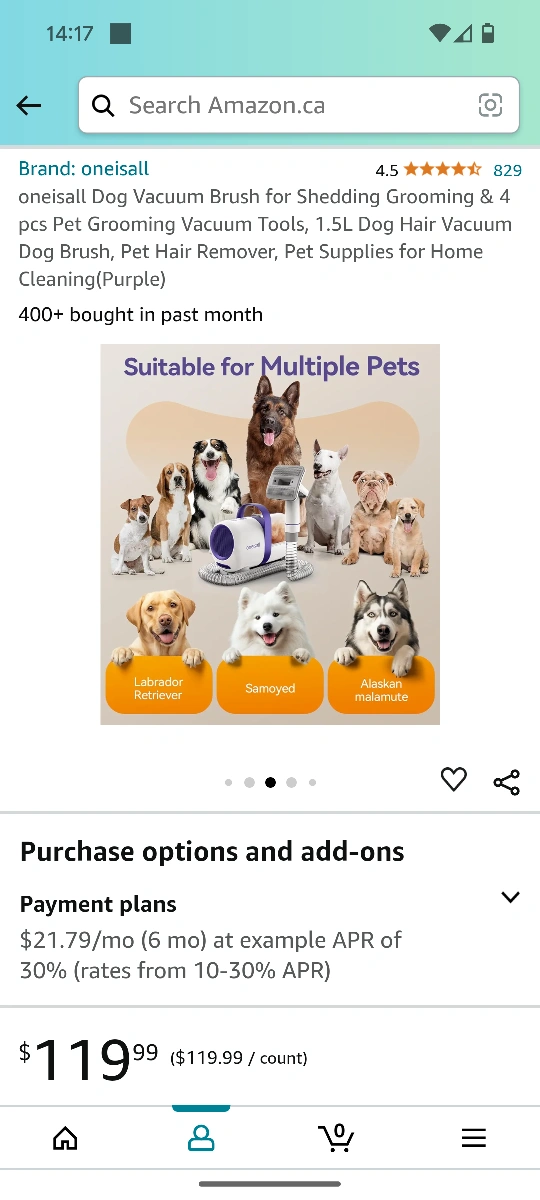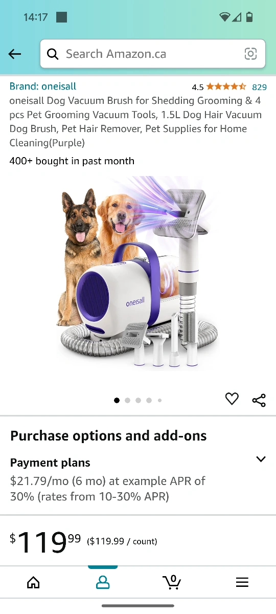 Vacuum for shedding grooming, 1.5L, comes with a brush tool, pet hair remover and a dog brush
