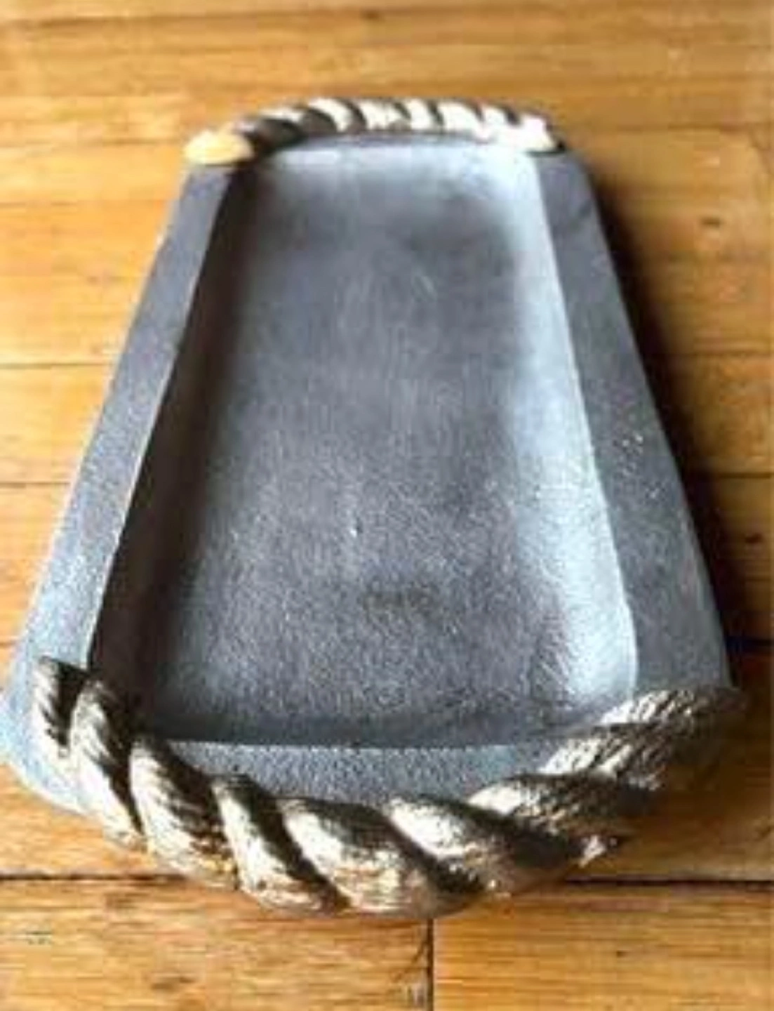Pewter & Brushed Gold-tone Weighted Tray - rope handle detail