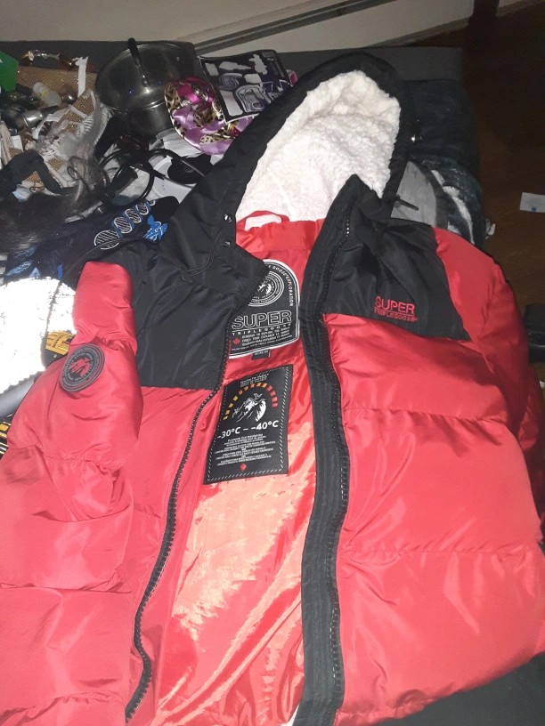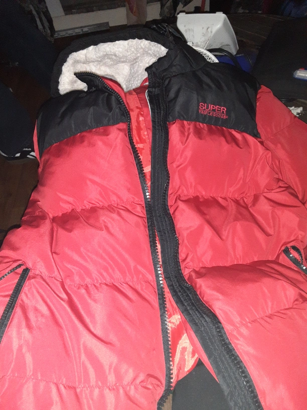Buy & SellSuper Triple Goose Winter JacketSuper Triple Goose Winter Jacket$60Red and black puffer jacket with a fleece lined hood. Has two zippered pockets on the front and one on the left arm.ConditionNewSizelargeBrandSuper Triple GooseWHERE TO MEETCheck LocationView MapSELLERverifiedkristinaMarlborough600 reviews1 chats·0 favorites·36 viewsSEND CHAT TO SELLERHi kristina! I’m interested in your listing.Hi kristina! I’m interested in your listing.Get the Karrot app to chatSign In to chat