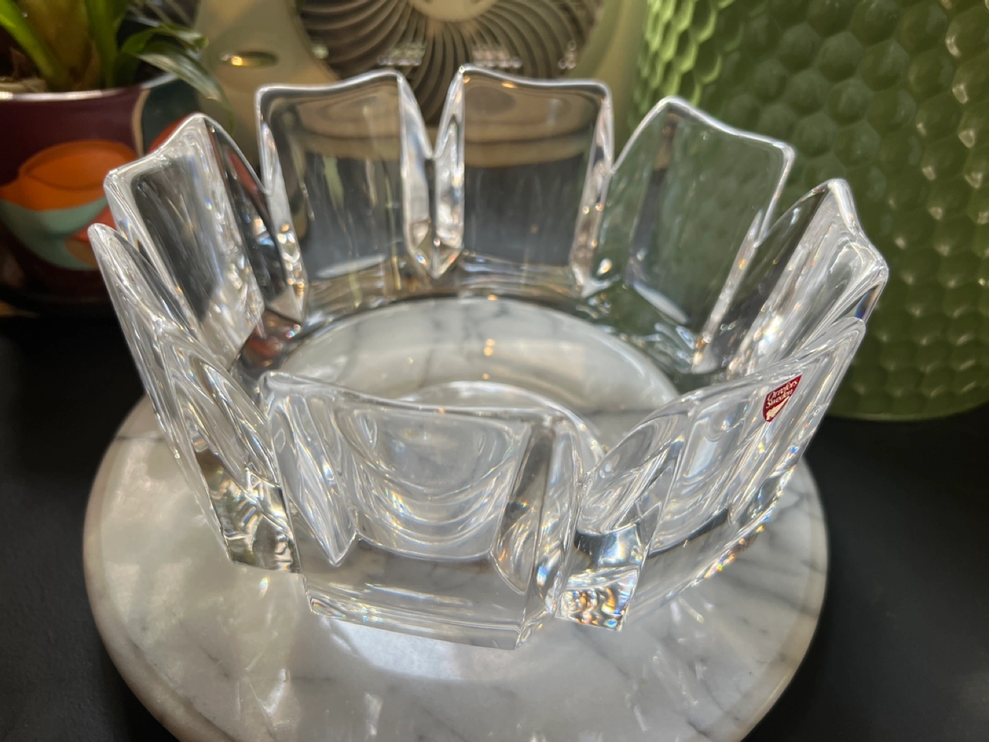 Vintage Orrefors Crystal Corona Bowl By Lars Hellsten. This is the large one in the series.