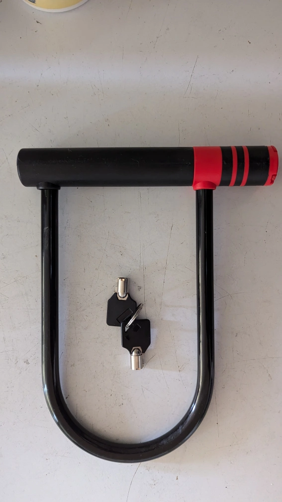 501Black u-lock suits for bikes and scooters. Includes two keys.