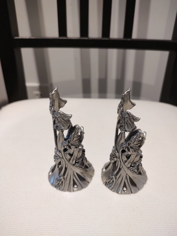 Set of 2 Pewter Candle holders with Floral Design
