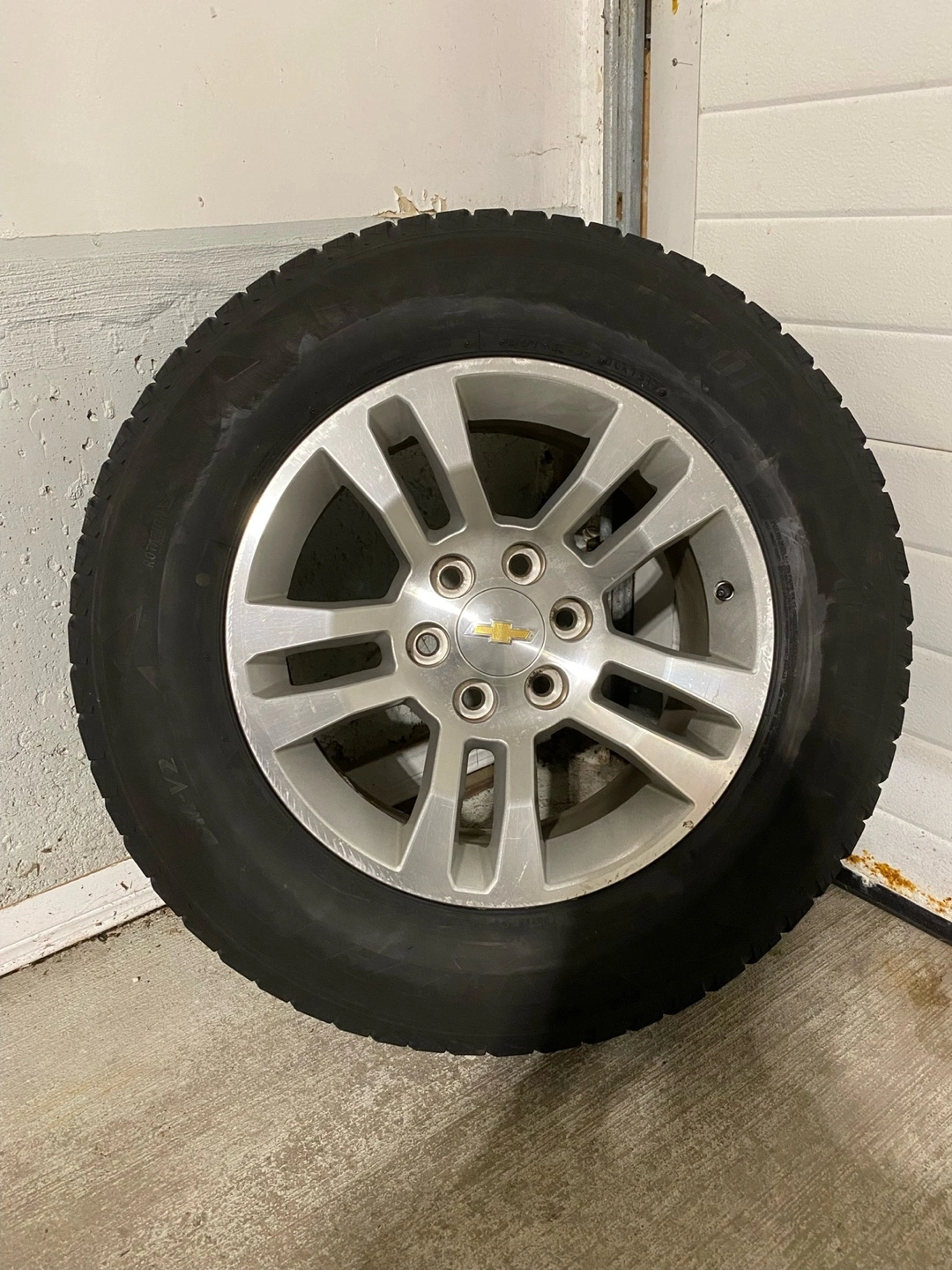 1 set of four winter tires on rims for Chevy Suburban, Tahoe or Silverado truck.