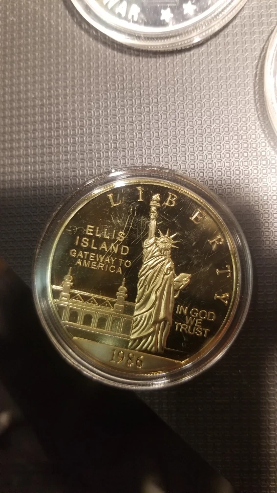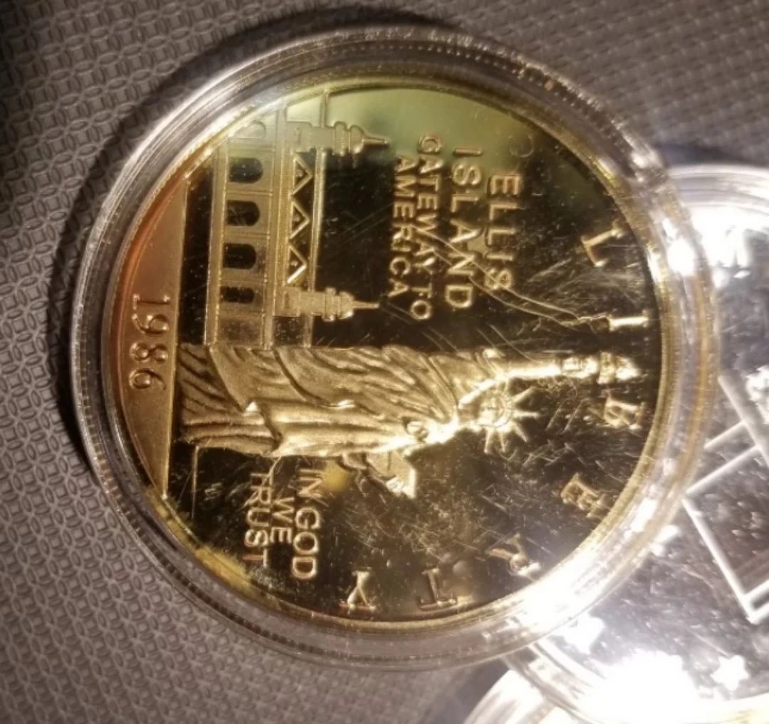 Buy & Sell1986 Ellis Island Gold Plated Commemorative Coin1986 Ellis Island Gold Plated Commemorative Coin$20Gold coin commemorating Ellis Island. Features the Statue of Liberty and the Ellis Island building. Dated 1986.WHERE TO MEETCheck LocationView MapSELLERRishRexdale17922 reviews0 chats·0 favorites·10 viewsSEND CHAT TO SELLERHi Rish! I’m interested in your listing.Hi Rish! I’m interested in your listing.Get the Karrot app to chatSign In to chat