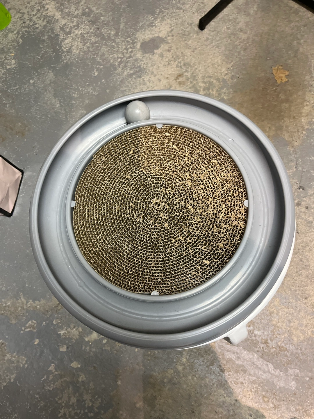 221Cat scratching post with cardboard scratching surface. Includes a ball for play.