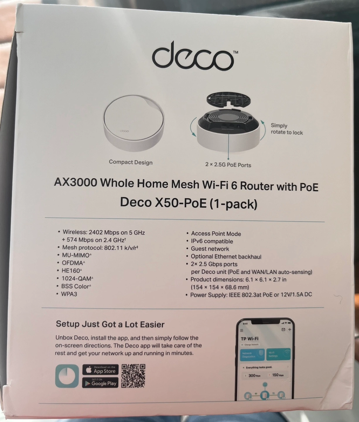 TP-Link Deco X50-PoE Whole Home Mesh Wi-Fi 6 Router (1-pack)