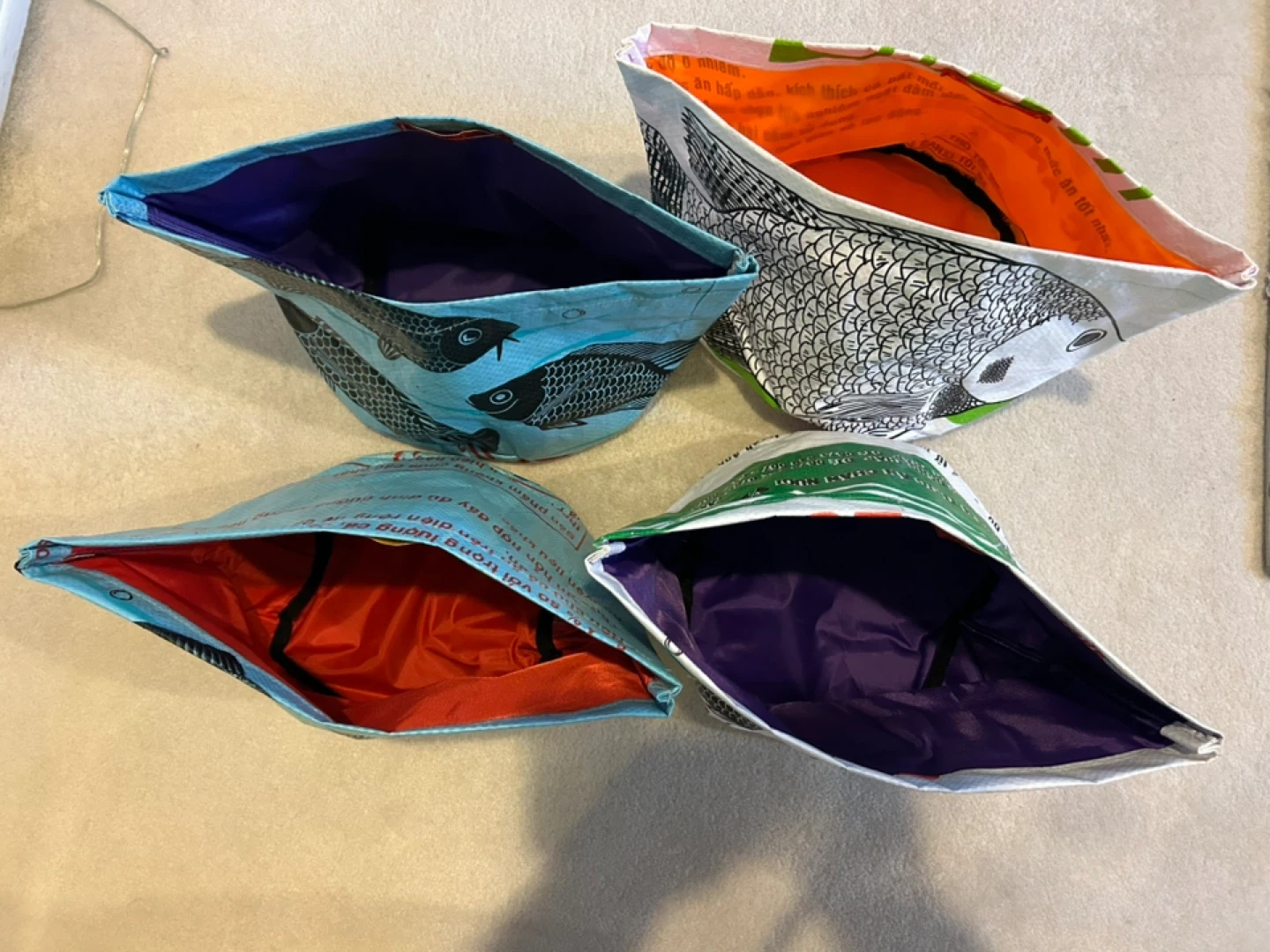 NEW “Saigon Kitsch” Rice bag baskets 8” x 8” from Vietnam. $10 each or 2 for $18.