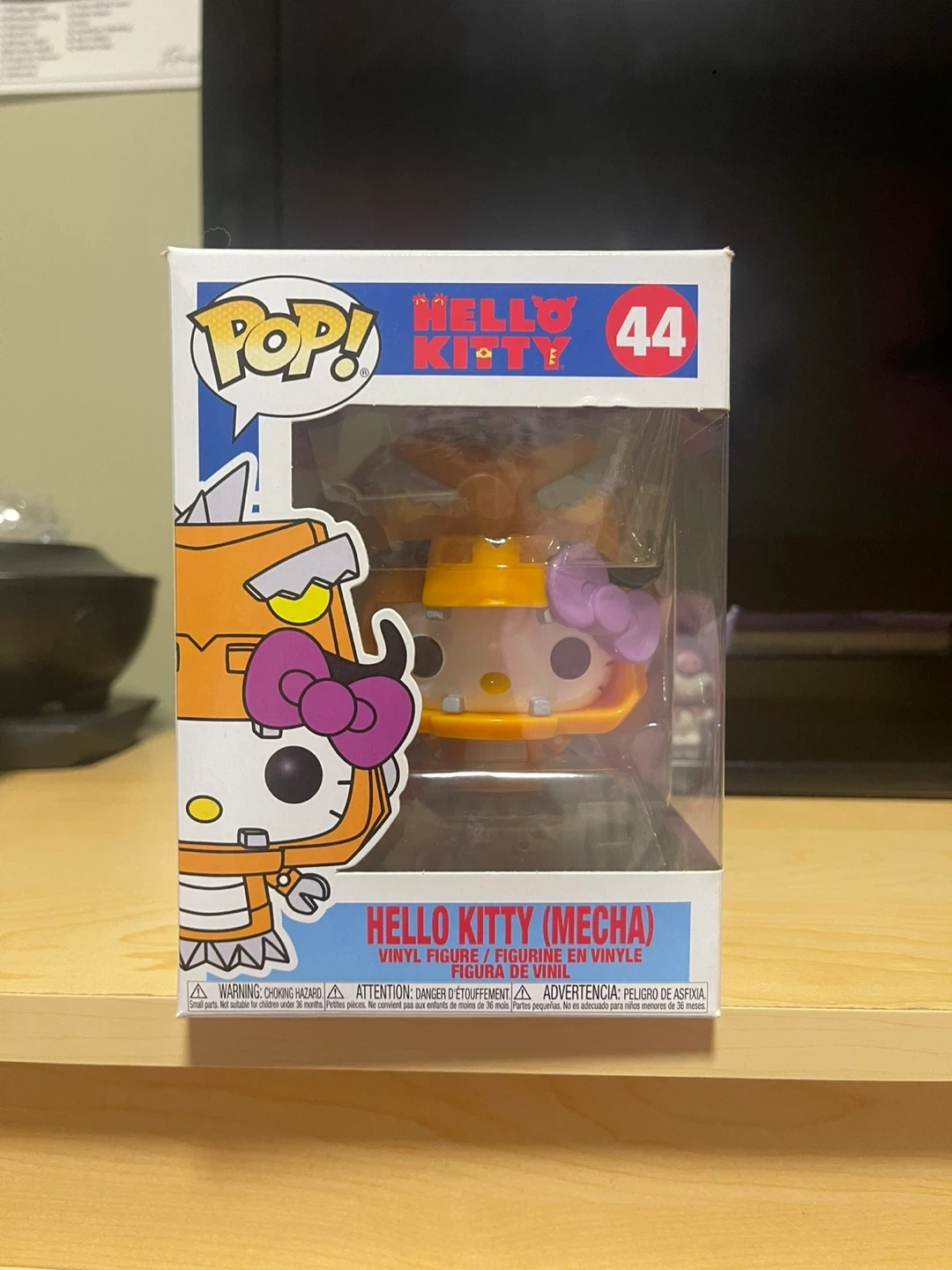 This is a Funko Pop! vinyl figure of Hello Kitty in a Mecha suit. It's figure #44 from the Hello Kitty line.
